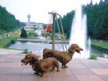 いっぱい歩いて疲れたじょー。でも楽しいんだじょー♪(S公園、噴水広場にて byわんわんわんさん)