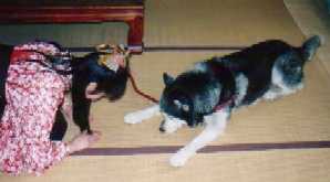 このあと「そら」君はキューンキューン鳴きながら引きずられる様に帰っていったわん。