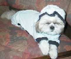 - 身ごろの背中の部分や後ろ足の近くにシャーリングテープを縫いつけて、ギャザーを寄せて動きやすくするようにする。
