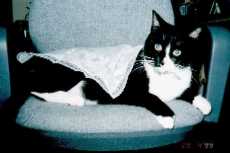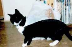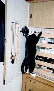 ←たんすの扉を開けたら、毎度この調子。 どうしても天辺に何があるか知りたいらしい。 どう頑張っても見えないくせにね。 |