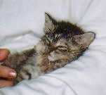 ミルクの器に顔つっこんでしまいましたの。