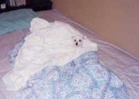 (右)ちゃーんとまくらして布団かけて寝ているモモです。ちっとコワイです。