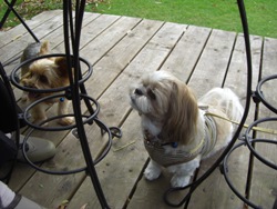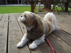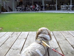 コカプーでお茶した後、宮崎まで戻るのですが、帰りはちょっと遠回りをしてえびの高原を通ることにしました。 紅葉はまだちょっと早いという話だったのですが、緑の中に赤や黄色が映えて・・・思った以上に綺麗でした。 ![]() ![]() 途中、堰のようなところが滝のように見えて綺麗だったので、ちょっと車を停めてしばし休憩。 ![]() ![]() 堰の上あたりも紅葉しはじめて、綺麗でした。 ![]() キャンディたちもテクテク・・・。 霧島スカイラインを通り、えびの高原を抜けて小林から高速に乗り、一路、宮崎へ。 ランチは一ツ葉にある「Villa Cafe SOLEIL(ソレイユ)」へ。 ![]() こちらもテラスは犬連れOKです。 ![]() テラス席は5席ありました。この日は天気もよかったので空いていたのは店側のテラス席が一つと一段高くなったステージの上にある席が一つだけ。 ![]() ステージの席はちょっと目立つかな?(しかも犬連れは私たちだけだし・・・)と思いながらも、こちらの方が他のお客様から距離があり、キャンディたちは落ち着けそうだったのでこちらにしました。 あはは・・・やはり、店内からも他のテラスのお客様からも注目されましたが・・・。(爆) ![]() 「なんか、みんな見てるような気がするんだけど・・・」 (いえいえ、キャンディ、気のせい!気のせい!^^;) ![]() ランチはきのことなすのパスタ プラス カフェラテをいただきました。 パスタもおいしかったのですが、パンがおいしかった〜♪ というか、パンにつけたオリーブオイルがおいちかった〜♪ ![]() |
