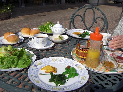 SORAから宇佐神宮を通過して昭和の町「豊後高田」に入り、真玉へ向かいます。 スパランド真玉を目印にして、その近くの小さい橋を渡ったらあとは細い一本道。 途中に看板がありますから、見落とさないように気をつけて。(^_-)-☆ 近くの真玉海岸は夕陽がとても綺麗な海岸らしいんですが、夕陽を見に行くと夜、この細い道を通らないといけないのか・・・(-_-;)と思い、却下。(爆) 天気よかったんでもったいないかな〜とは思ったんですが。 ![]() ![]() 「ヴィラ・フロレスタ」 ![]() 宿泊棟は7棟。他に本館にもキッチン付のお部屋があるようです。 ![]() 犬連れで泊まれる棟はA棟とC棟の2棟。私たちはC棟に泊りました。 ![]() 室内には囲炉裏があり、実際に煮炊きもできるそうです。 ![]() あと、ダイニングキッチンと ![]() 和室があります。 旅館やホテルではないので、布団敷きはセルフです。 料金は1棟料金で13,000円。4名以上の場合は追加料金になります。 自然がいっぱいで・・・気持ちがいいくらい鳥の声が聞こえてきます。 ![]() 夏は裏にある雑木林で ![]() カブトムシも捕まえられるそうですよ。 ![]() 玄関前にはバーベキューするスペースもありました。 こちらには薬膳カレーのレストランがあったのですが、残念ながら3月末に撤退されたそうです。 朝食は準備してもらえますが、夕食は自炊か外食になりますが、自炊は面倒なので豊後高田のお店からお弁当を配達してもらうように事前に予約してました。 お弁当と言っても・・・・ほか弁じゃないですよ。_(T▽T)ノ彡☆ばんばん! ![]() ちょっとした旅館で食べる夕食って感じでしょ? 折角、キャンディたちと一緒なんですから、できるだけお留守番をさせることなく、一緒に楽しみたいですからね。外食もいいですが、水入らずで気兼ねなく食事ができる方が私は好きです。 あと、管理人の方がハーブティセットを用意してくださいました。 ![]() 私はどちらかというとハーブティはちょっと苦手な方だったんですが こちらのハーブティは癖がなく「あら?イケる」とおいしく飲めました。 キャンディたちの夕食はここにくる前に寄ったSORAさんからテイクアウト。 ![]() 人参が犬の形をしているところがかわいいでしょ? もちろん、2匹とも即、完食です。 ![]() お腹いっぱいになったら、高いびきのキャンディです。 今日もいっぱい歩いたもんね。 朝は鳥の声で目が覚めました。 ![]() 天気もいいので朝も早よから、ロッジ周辺を軽くお散歩しました。 ![]() 朝食は500円。本館にあるレストランでいただくのですが、天気もいいのでキャンディ・ラナも一緒にテラスでいただきました。 ![]() 全て無添加野菜。手作りのゆずジャムがとてもおいしかったです。 野菜のプレートにはチャイブの花が乗せてあったのですが、まさかこれも食べれるとは思わなくて・・・。 皿を片付けてもらう時に「食べれないものは出してないので、お皿に乗ってるものは全て食べられますよ。」と教えてもらい、チャイブも食しました。ねぎの味に近いんですが、ねぎのように辛くなく、ちょっとピリッとした感じでなかなかおいしかったです。 あと、写真を撮り忘れたのですが、100%の人参ジュースが絶品です。 「これが人参の甘さなんだ〜」と実感できますし、人参ってこんなにおいしいんだって再確認できました。 食後、本館横にある農園を見せてもらい、摘んだばかりのスナップエンドウを生のままで食べさせてもらいました。全然、青臭くなくておいしかったです。 キャンディもラナも土や草が気持ちいいようで、なかなか動こうとしないので笑っちゃいました。(爆) ![]() 昨日のSORAといい、ここヴィラ・フロレスタといい、オーナーや管理人さんとたくさんお話ができて、とてもラッキーでした。 ![]() 今流行りの「スローライフ」って言葉がピッタリで機会があったら、是非また訪れたいですね。ただ、駐車場から宿泊棟に上がる階段がちょっと急なところと段の高さが揃っていないところは、足が弱い高齢者連れにはちょっと辛いものがあります。 |