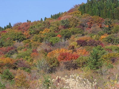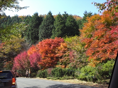 次はこの日のメインの久住ロード。 ![]() この道はくじゅう花公園からちょっと北上したところに入り口があります。 料金は往復で500円。 ![]() こちらは毎年11月の上旬が見ごろなので、ちょうど今頃が見ごろ。 ![]() いろいろな色が混ざって・・・油絵みたいです。 青空に映えて、とても綺麗でした。 ![]() 道路沿いに紅葉した木々があります。 ![]() 500円の有料道路料金が取られるせいでしょうか? それほど混んでないのがうれしいです。 500円でこれだけの紅葉が細い道運転せずに見られるなら・・・安いものだと思うのですが。 ![]() ![]() 九州の紅葉も東北の紅葉に負けないでしょ?(^^ゞ ![]() 緑と赤と黄色とオレンジ色と茶色のコントラストがとても綺麗。 ![]() 真っ赤に紅葉している箇所は他にもたくさんありましたが、母はこの場所の色合いがとても気にいったらしいです。 ![]() ![]() 車に乗ったままでも手に取る近さで紅葉が見れます。 ![]() ![]() 同じ道でも行きと帰りではまた、違った色合いに見えるのもこの道の楽しさのひとつだと思います。 ![]() とっても綺麗な景色ですが・・・わき見運転にならないように気をつけてくださいね。 あと、車を停めて道を歩く時、ついつい見とれて車への注意が散漫になりやすいので、道沿いを歩く時にも十分、気をつけてください。 久住ロードの出口は瀬の本になります。 そのまま折り返してもよかったのですが、折角ここまで来たので、ちょっとシェタニでお茶して行くことにしました。 |