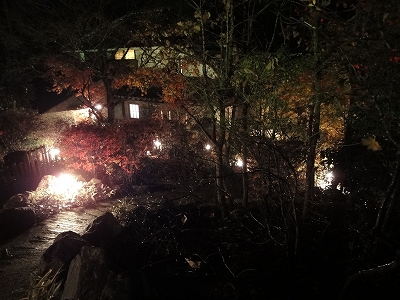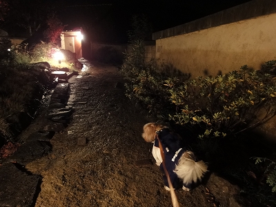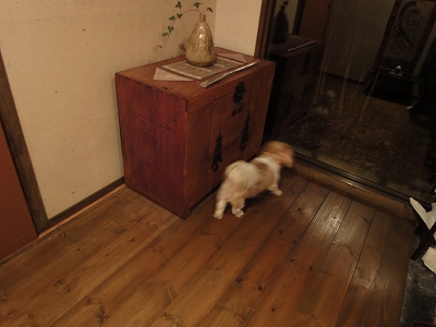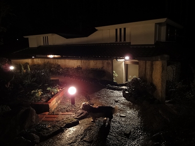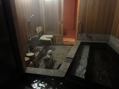 夕食後、談話室を見学させてもらいました。 ![]() 談話室は他の宿泊者の方にご迷惑をかけなければ、犬連れでも利用OKだそうです。 ガウつかないってことが条件ってことですね。(^_-) ![]() ![]() 昼は由布岳が正面に見えるのもいいですが、夜は夜で昼と違う雰囲気で落ち着きます。 こんなところで犬がガウガウいったら、折角の雰囲気がぶち壊しになっちゃいそうですね。きをつけようっと。 ![]() こちらは座敷。向こう側にはライトアップされて小庭が見えて幻想的です。 夜の雰囲気を楽しみに駐車場から宿を見てみました。 ![]() ![]() 夜の一壺天の玄関。 夕食後、ちょっと雨が降ったようで表に出ると地面が濡れてました。 ![]() キャンディは体が汚れないようにツナギを着て、ちょっと夜のお散歩にお付き合いです。 ![]() ![]() 真朱のお部屋の前。昼とはまた一味違う幻想的な感じです。 ![]() 夜になると、玄関の横にある大きな窓は室内の物が写り込むので、キャンディはちょっと恐々ながら、でも興味津々で窓の方へ走っては・・・ ![]() こっちに走りと玄関をあっちこっち。 ![]() キャンディ「だって、何か見えたんですもん!」 ![]() 夜のお部屋の露天風呂です。 ![]() 夜の散策が終わったところで、夕食の後にいただいた柚子茶を飲みました。 おいしかったです〜 そして・・・就寝。 ![]() 早朝の露天風呂からの景色です。 こんな景色の中の朝風呂は気持ちよかったですよ〜 |