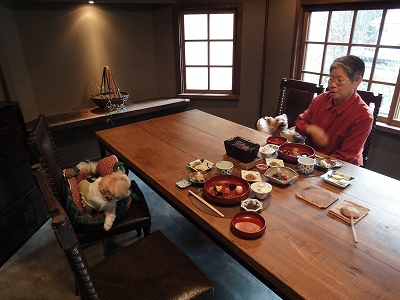 11月30日(月) 朝風呂に入った後、キャンディを連れて朝のお散歩です。 ![]() ![]() かわいい山茶花が咲いてます。 この後、湯布院で人力車に乗った時に車夫さんに教えてもらったのですが、山茶花は湯布院の花なんだそうですね。「山茶花がよく咲いてるよね」と母と話していたのですが、それも後で納得しました。 ![]() ![]() 霧がかかっていて由布岳は見えませんが・・・ ![]() この霧の風景がいかにも朝の湯布院って感じです。 母親が朝風呂に入ってる間、キャンディはテラスをあっち行ったりこっち行ったり。 ![]() ![]() ![]() ![]() テラスには椅子が2つあります。 朝のすがすがしい空気をテラスに座って、ゆっくり楽しみました。 ![]() ![]() 8時になって朝食です。朝食も夕食と同じ個室でいただきました。 ![]() ![]() ![]() 飲み物は林檎ジュースをお願いしました。弱炭酸が入っておいしかった〜 ![]() 開きは炭で焼いて食べます。焼き米の入った湯豆腐もおいしかったです。 ![]() ![]() チェックアウトの時間は11時なので、ゆっくりできます。 お部屋でお茶をいただいて・・・そろそろ出発しましょうか。 ![]() ![]() この日の天気予報は曇。雨はなんとか大丈夫そうですが、気温は低そうです。 ![]() 寒くないようにしなくっちゃ。 |