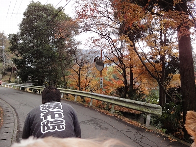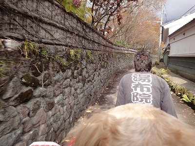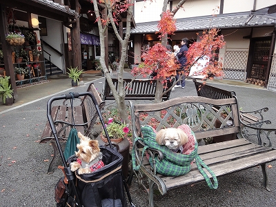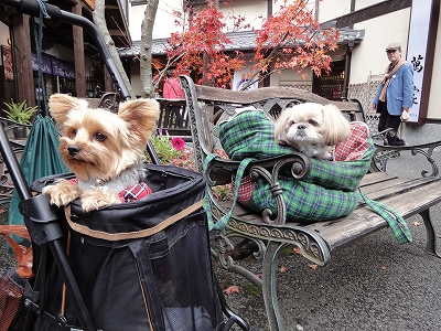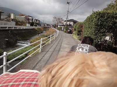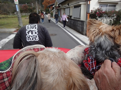 食事を済ませた後、人力車に乗る為に駐車場までカートや荷物を置きに戻ります。 戻る途中、湯の坪街道のお店に寄りました。 ![]() 湯の坪街道の真ん中あたりにはトイレがあり、その向こう側は駐車場になっています。 ・・・と言っても湯の坪街道から車で入れる訳ではなく、車は大通り沿いから入るのですが、入ると立体駐車場のようになっていて、湯の坪街道へ下りれるようになっています。 (但し、コインパーキングです) ![]() トイレのある場所のすぐ近くにはベンチがありますので、ちょっと休憩することもできます。 (人は多いですけどね。(^^ゞ) ![]() ![]() ![]() 夢民です。地図で見た時には「ムーミン」って読むかと思っていましたが「ゆめたみ」って読むんですね。(爆) はちみつ入りの生キャラメルが売ってます。 ![]() 茶房 湯の坪庵です。 外にあるテーブルは犬連れでも利用できます。 「ペット連れの方はこちらのテーブルをご利用ください。お気軽にこちらの窓から声をお掛けください」と書かれてありました。 こちらは本格的なコーヒーがいただけて、カップにもこだわりがあって、一人一人別々のカップが使われるそうですよ。ランチしたばかりでなけば、お茶したかったです。 ![]() 湯の坪街道を出て、駐車場近くのサンリオのお店まで戻り、人力車のお兄さんに声をかけました。 犬2匹連れというのが珍しかったんでしょうか? 「もしかしてご予約いただいていた・・・方ですか?」とこちらが言う前に聞かれました。(^^ゞ 事前に人力車をメールで予約しようなんて人間は私くらいなのかも〜 (o_ _)ノ彡☆ギャハハ!! バンバン! 今回は30分金鱗湖周辺コースをお願いしました。料金は2人乗りで8,000円。 乗る前は「ちょっと贅沢かな?」って思いもちょっとありましたが・・・実際に乗った感想から言うと 全然惜しくないです。というか・・・ 次回も絶対、乗りたい!O(≧▽≦)O ワーイ♪ 特に犬連れで湯布院を観光する方にはおススメですよ。 人混みを気にすることなく、高い目線で周囲を見られるのは爽快です。 犬は小型犬に限りません。 今回担当してくださった車夫さんはゴールデンも乗せたことがあるそうですから。(爆) オルゴールの森の前からいざ!出発。 ![]() 犬連れで利用できる「古式手打ちそば 泉 岳本支店」「Cafe La Ruche」を右手に見ながら金鱗湖の反対側へ向かいます。 ![]() 金鱗湖の向こう岸は坂になっているので、観光客の方がここまで歩いてくることは少ないそうです。(みなさん、途中で引返すみたい) ![]() でも、もったいないな〜 こんなに紅葉が綺麗。 しかも人力車に乗っているので目線が高いですから景色がよく見えます。 ![]() 金鱗湖の向こう岸にあるペンション豊の国の前を通り・・・ ![]() 佛山寺へ。門前に鐘付があり、今でも11時と15時?に鐘をついて湯布院に時を知らせてるそうです。 ![]() ![]() 車では移動しづらく、かといって歩くにはちょっと・・・という道もスイスイ進みます。 途中、反対方向から来た人力車と遭遇。 相手のお客様から「あら♪犬も乗ってるわ〜」と言われ、 通り過ぎる時に相手の車夫さんから「予約いただいてたお客さん?」と聞かれてました。 すっかり、えびす屋さんでは話題になってたんでしょうか?_(T▽T)ノ彡☆ばんばん! ![]() そして、田んぼ道へ・・・ 天気がよければ由布岳が目の前に広がるそうですが、元々、山に囲まれている為、7割近くの高い確率で由布岳には雲がかかるそうです。湯布院は周囲を山に囲まれていて、その山々は神様と言われていて、五つの山に囲まれている湯布院は五つの神様に守られていると言われているそうです。 (というような話を車夫さんが風景を見ながら、説明してくれます。) ![]() 独身時代に湯布院に遊びに来たときにお泊りしたペンション木綿恋記の前を通りました。 懐かしいな〜 パンプキンパイがとってもおいしかったのを覚えてます。 今は犬連れOKになったと聞いていましたが・・・同室OKじゃなくてペットホテルのようなものを作ってるだけのようです。 ![]() クヌギの径と言われる石垣の道を通り・・・ ![]() 午前中に歩いて通った湯の坪街道の横を流れる湯の坪川に沿って走ります。 ここは夏はホタル鑑賞ができるそうで、川の地面を段々にして増水した時にホタルの幼虫が流されないようにしてホタルを守っているそうです。 ![]() そして雑貨屋さん「TEFU TEFU」の前を通り、出発したオルゴールの森の前に戻ります。 人力車が走ることだけでも珍しい上に、犬が乗ってるのが珍しいのか? すれ違う観光客の方から「ほら♪、わんちゃんが乗ってる」 「あら〜犬が乗ってるわ」とたくさん声をかけられました。^_^; キャンディもラナも風を切って耳をたなびかせながら、気持ち良さそうにして座ってましたから目立ったのかもしれませんね。 30分なんてあっという間に終わりました。 「1時間にすればよかったかな〜」と思ったりしましたが、帰りの時間もありますからね。 この楽しみはまた次にということで。(^