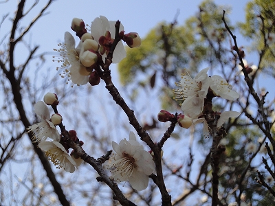 年老いた梅の木の根元から新しい枝が元気よく伸びていました。