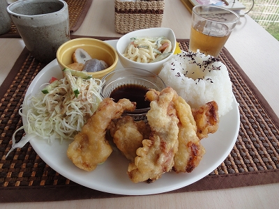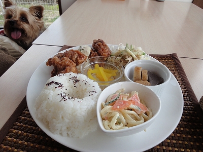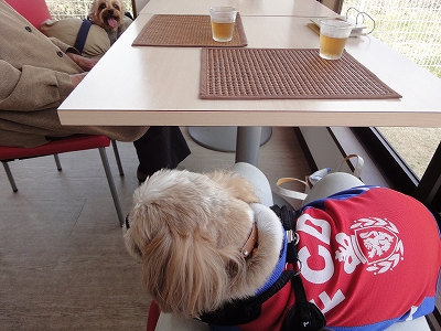 車に乗って数分後・・・再び、母の絶叫が! 「.....Σヾ(;☆ω☆)ノギャアアーー!! 又、ウンチが出てる」 「嘘でしょ???」と近くにあったコンビニに車を停めて、ラナを見てみると、確かにゆるゆるウンチがお尻についてました。 (-ω-;)ウーン あれだけ長い時間、公園にいたのになんともなくて、なんで車に乗った途端に出るかな〜? 原因はラナの興奮しやすい性格とゆるくなったお腹のせいだと思いました。 ラナは車に乗るとかなり、ハイテンションになります。なので、お腹がゆるい状態で力が入るので、車に乗るとじわじわじわ〜っと出てきちゃったんだと思います。 公園にいる間は穏やかな気持ちで興奮することもなかったので、お腹がゆるくても下痢ピーが出ることはなかったんでしょうね。 お腹をゆるくさせた原因は間違いなく食べすぎだと思いましたので、母と二人、海よりも深く反省したことは言うまでもありません。(*- -)(*_ _)ペコリ 旅先だとついつい甘くなりがちですが、慣れていない旅先だからこそ、食べさせる物や量には十分、気をつけなければいけませんでした。 ちなみに・・・同じ物を食べたキャンディですが、朝ご飯を食べなかったことを除けば、他には全く変わりありませんでした。(爆) 「昨日の夜は食べ過ぎたから、朝ご飯は抜いて調整しなくっちゃ!」 ってとこだったんでしょうか? さて、ラナのお腹がゆるいのが治まらないとランチどころじゃありません。 しばらく様子をみて、どうしても治まらないようだったら、おにぎりでも買ってそのまま宿に直行しようか?と話していましたが、しばらくするとお尻も落ち着いてきたようだったので、とりあえず、ランチに行ってみることにしました。 ![]() この日のランチは去年、行きかけて断念した例の坂道の先にある「mone cafe」です。 今回はお店に電話して道順を確認したので死ぬ思いをすることはありませんでした。(爆) mone cafeに行く途中に「アバンティ」というドッグランのある石焼カレーのお店があったのですが・・・すでに閉店していたみたいです。 ホームページは生きてるけど、ブログの更新が2008年の8月で終わっていたので「あれ?」とは思っていたのですが、今回、mone cafeと一緒に寄ってみたいと思い、電話をしてみたら・・・「現在、使われていません」コール。 非常に眺めのいいお店だったのに・・・残念です。 ![]() さて、mone cafeさんは白木ゴルフ場の手前にあるドッグラン付きカフェです。 ラナの調子が悪くなければ、ランに入るところですが、興奮すると下痢ピーになりそうなので(^_^;) 今回はパスしました。 カフェについた頃は台風並みのすごい強風だったので、ラナが下痢ピーじゃなくても、ランには出なかったかもしれませんが・・・ ![]() ![]() 窓が大きく、明るい店内です。 ![]() お店の中の方が落ち着けたのか? ラナもご機嫌いいようです。 (元々、下痢ピーはありましたが、ぐったりして具合が悪くなっていたわけではありません) ![]() 食事ができるのを待つ間、キャンディも膝の上で一休み。 ![]() ランチメニューです。私たちは・・・ ![]() 母がチキン南蛮。 ![]() 私がとり天を注文です。 先月、熊本市内で食べたチキン南蛮は「南蛮酢に漬けてないチキン南蛮」でしたが こちらの南蛮はちゃんと南蛮酢に漬けてありました。(爆) とり天もチキン南蛮もとてもおいしかったです。800円は安いと思うな〜 ![]() 食事中はテーブルの下にいてもらったキャンディ。 母がトイレに行っている間、私がラナを抱っこしていたら「私も私も!!」と抱っこをせがんできました。 外は台風並みの強風で、室内にいても風の「ゴーーーーーッ!」って音がして怖いくらいでした。 でも、外に出ると気温は高く、あったかいというか、暑いというか。^_^; なんだか極端な天気の日でしたね。 |
