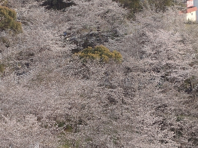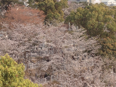 高台から斜面一面を見ることができますので、遠めからの桜を楽しむには絶好の場所です。