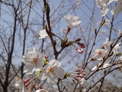 3連休(私は4連休でしたが^_^;)の最終日の昨日は真っ青な空にぽかぽか陽気で風もなく、絶好のおでかけ日和になりましたね。 遠出から帰ってきたばかりだし、連休中で車も多いだろうと見越して遠くへのおでかけはしませんでしたが、家の中にいるのはあまりにももったいない天気だったので、市内の桜の開花状況をチェックしてまわりました。 1箇所目は春日神社前の桜並木。 ![]() ここはちらほら程度で1分咲きといったところでした。 見頃は今週の週末か、月末くらいかな? その後、キャンディのお散歩では恒例の城山へ。 今日は桜見物なので、門近くの駐車場に停めました。 ![]() ![]() 城山の門を通ると・・・ ![]() 桜が目に止まります。 ![]() 城山の桜はすでに満開に近いくらいで、今は見頃です。 ![]() ![]() ![]() 千人殺しの石垣の前の桜も満開です。 ![]() キャンディ「桜の薄ピンクが青空に生えるね〜」 ![]() ホント、この日は絶好のお花見日和でした。 ![]() ![]() ![]() 千人殺しの石垣の横の階段をおっちらおっちら登っていくと・・・ ![]() 緑の紅葉とピンクの桜がとても綺麗です。 ![]() ![]() ![]() キャンディもお散歩しながら、桜見物です。 ![]() 城山は階段が多いですが、階段横にキャンディが歩くのにちょうどいい広さの芝生があります。 ![]() 上の方の桜は下の方の桜に比べると、まだ蕾が多いみたいなので、今月末くらいまでは楽しめそうですよ。 ![]() ヤブ椿も花芽がたくさんついてましたので、まだまだ十分、楽しめます。 ![]() ![]() ![]() キャンディ「城山の桜は今が見頃ね♪ お花見するなら今週末がベストだと思うわ」 ![]() そうそう、大きな桜の大木の根元に・・・ ![]() こんなに小さな桜の花を見つけました。こんなに小さいのにたくさんの花をつけて・・・ アッパレでしょ? ![]() さて、城山で桜をお腹一杯味わえましたから・・・ ![]() ぼちぼち帰りましょうか。 予定より城山の開花は早かったせいか、天気がよかった割にはお花見客はそんなに多くなかったですね。 でも、木曜日あたりまで雨が続くらしいので、花見をするには昨日が一番、よかったかもしれません。 |