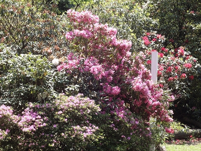 【4/29 早水公園(あやめ園)→しゃくなげの森→いこいの里】 しゃくなげの森は三股町というところにあり、都城から車で30分くらいです。 毎年3月の末から5月の1週あたりまで「しゃくなげ祭」が開催されています。 ![]() この期間のみ、入園料800円が必要ですが、訪れた日はしゃくなげの見頃が終盤にさしかかってきた頃でしたので600円に割引されてました。 こちらはわんこの入場OKです。 ![]() 受付にはこちらの看板わんこもお出迎えしてくれます。(^_^)v 入園料が割引になるくらいなので、しゃくなげはあまり期待していなかったのですが・・・ ![]() 園内に入ってみると、予想以上にしゃくなげが咲いてました。 ![]() ![]() 母も予想以上に花があったので、かなり上機嫌です♪ ![]() 又、しゃくなげの花以外にもうれしい出会いが。 ![]() ドンピシャ!私好みのにゃんこです!!! ![]() いやあ、思わず近づいて、長々と猫会話を交わしてしまいました。(爆) 私・・・白黒ニャンコ好きなんですよ。残念ながら我が家にはいませんが。^_^; 早水公園が私の予想以上に広く、意外に散策に時間がかかってしまったのでしゃくなげの森についたのは1時を過ぎてました。 なので、まずは腹ごしらえに、ヤマメを食べに行きました。 ![]() 残念ながら、こちらで最も有名な黄金イクラ(ヤマメの卵)は在庫切れでありませんでしたが、ヤマメの塩焼きは最高においしかったです。 ![]() ![]() 通常500円のところ100円引きでした。 ![]() こちらはヤマメの漬け丼。 漬けもおいしかったですが、私は塩焼きがツボにハマりましたね。 是非、次回は2匹食べたい。(爆) こちらは店内ではなく、屋外にテーブルがありますので、犬連れでの食事もOKです。 ![]() お店の方も犬にとても優しく、わんこ用に冷たくおいしいお水を出してくれました。 ![]() 渓流の川のせせらぎを聞きながら、アウトドア感覚での食事は自然も一緒に食しているようで楽しかったです。 又、こちらではヤマメ釣りもできます。自分が釣ったヤマメを焼いてもらえば、より一層おいしく感じるかも!! ![]() 渓流では、夏 渓流遊びができます。 ここは「がぐれ淵」というそうです。ちなみに「がぐれ」とは都城の方言で「カッパ」を意味するそうですよ。 ![]() キャンディ「泳いだら気持ちよさそうね〜」 おなかいっぱいヤマメを堪能したら、いざ、しゃくなげ鑑賞へ。 |