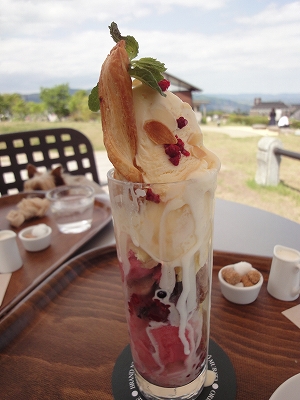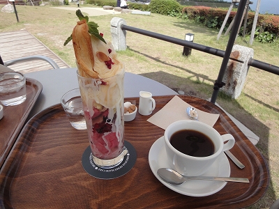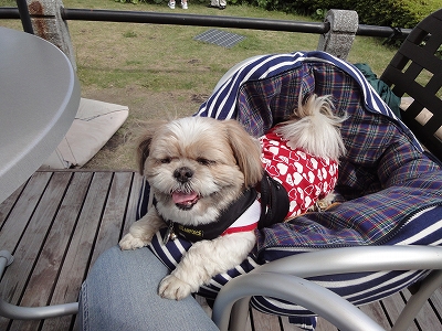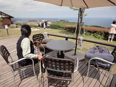 ランチのあとはやはりデザート。(爆) 季節のデザート「B-Speak Cafe」のベリーHappyロールパフェが食べたい! ってことで、すぐお隣の「B-Speak Cafe」へ移動しました。 ![]() ![]() テラステーブルの配置が変わったようで・・・横長のテーブルがありました。 ![]() 確かにこちらの方が景色がよく見えるかも。 ![]() ![]() 私たちは丸テーブルへ。 ![]() こちらからの景色も最高ですね。 ![]() パフェとコーヒーのセットにしました。 ![]() 「わたしも食べたい!」とさりげなく前足を膝に置いて要求するキャンディ。(爆) ![]() 人気メニューの「Pロールパフェ」が春らしくアレンジされてます。 プレーンのPロールと チョコのPロールと アイスクリームと ブルーベリーとラズベリーが層になっています。 とてもおいしかったです。 ![]() デザートを食べた後はドッグランへ。 ![]() ちょっと一走りして帰りました。