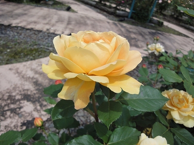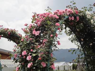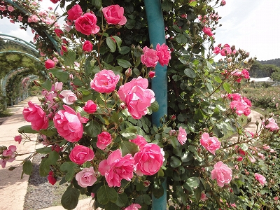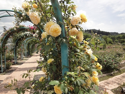 5月末だというのに、今年は気温があまり上がらなかったので、はな阿蘇美に薔薇を見に行くことにしました。私たちには気温が低いのは好都合ですが、薔薇にとってはいつもの年より気温が低いことと日照時間が短かったこともあり、いつもより薔薇の開花が遅れているそうですが・・・。 はな阿蘇美はローズガーデンとレストラン・物産館前のレイアウトが変ってました。 レイアウトを変わったのはいいんですが・・・ 以前はまっすぐすすめたところに土を入れて芝を張って通れなくして、バラ園入口に行くにはバラの苗木が並んでいる狭い道を通っていくようになっていましたので、人がごったがえしていて、とても歩きにくいし、わかりにくくかったです。 到着したばかりは人も少なかったので、まだよかったんですが、30分もしないうちに大型バスが軽く10台。(^^ゞ そうなると狭い通路は人でごったがえして、狭い通路は余計、歩きにくくて。 折角のの改装にケチをつけて申し訳ないですが・・・ わたし個人的には去年までの方がすっきりしてよかったと思います。 ![]() こちらがローズガーデンの入口です。 ![]() 園内の薔薇は4、5分咲きと言う話でしたが、なかなかいい咲き具合だったと思います。 ![]() ![]() ドーム前あたりはこれからが見頃になりそうです。 ![]() 来週・・・か10日くらい先が満開かな?(その頃、雨が降らないといいんですが) ![]() アーチの薔薇もきれいです。 ![]() ただ・・・ガーデンに入って、何か違和感を感じました。それが何かのか?よくよく見てみると・・・ 駐車場側の金網に這わせていたツル薔薇が少なくなっているような気が。(^^ゞ (気のせいでしょうか? でも、確か、もっとツル薔薇があったような気が) 今年からできたローズサークルの方にツル薔薇がありましたので、もしかするとそちらに移植したのかな??とも思ったり。 ![]() もっと違和感を感じたのは・・・ 一番楽しみにしていたドーム内の薔薇の数が減っていたこと。(-_-;) 特に一番気に入っていたパーゴラの上の薔薇がなくなっていたのは、かなりショックでした。 どうして取っちゃったんでしょう?? あんなに見事に大輪の花が咲いていて、記念撮影するのに最高の場所だったのに。 去年までのドームに比べるとなんだか寂しく感じました。 ローズサークルの方に移植するのに、ドームの薔薇を使われたのでしょうか?? できれば、私はドームの薔薇はあのままの方がよかったな〜(;_:) あと・・・いつもならブランコにたくさんの子供が遊んでいたのに、この日は1人、2人くらい。 ブランコの周辺にはにぎやかな子供の声が響いていたのに・・・ ローズサークルが新しくローズガーデンのエリアに入ったので、無料で入れなくなったせいだと思いますが、ブランコは以前のように、子供が自由に遊べる方がよかったような気がしますね。(^_^;) |