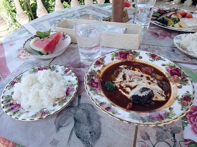 ![]() ランチメニューは「英国ランチ」と「ビーフシチュー」の2種類です。 ![]() 飲み物がついて 1,250円です。 ![]() 母は「英国ランチ」を ![]() 私はビーフシチューをいただきました。 ![]() いつもなら食後はコーヒーを飲む私たちですが、こちらにくるとやはり頼んでしまうのは紅茶。(*^_^*) ![]() 前回はアールグレイをいただきましたので、この日はローズティをいただきました。 ![]() ![]() テラス席から眺める景色は何にも変えられませんね。 ![]() ![]() こういう場所でゆったりと時間を過ごすと本当にリラックスできます。 ![]() キャンディはテラス席の床がひんやりと冷たくて・・・気持ちよかったようです。 ランチの後、再びお庭をお散歩です。 ![]() こちらはもちろん薔薇が綺麗なんですが・・・ 素敵なものは薔薇だけじゃないんですよ。 ![]() 芝生のお庭には人知れず、真っ赤な苺。 ![]() 駐車場横の木陰にひっそりと咲いているユリ。 ゆっくりと時間を過ごしたい時にはおすすめなお店です。 (注意) テラスは犬連れOKですが、こちらはドッグカフェではなく、あくまでも「犬連れでもいいですよ」のお店ですので、そのあたりは十分にふまえた上で楽しい時間を過ごしてくださいね。 又、こちらには庭やお店を自由に行き来する看板猫さんが5匹います。 人慣れしていてとてもおとなしい猫さんですが、愛犬が猫が苦手で姿を見ただけで興奮してしまう場合は犬連れでの利用は遠慮した方がいいかもしれません。 |