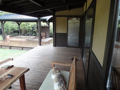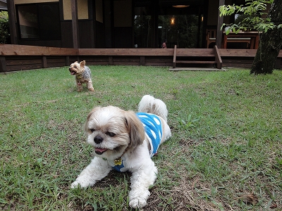 久住 小笠原のお部屋は露天風呂がそれぞれ異なりますが、室内の作りは同じです。 ![]() 今回は7月なので、足袋型靴下はおいてありませんでした。 部屋についているドッグランは前回よりやや広めです。 ![]() 100番台のお部屋より200番台のお部屋は倍くらい広いという話も聞きましたが・・・ 「みやまきりしま」に関しては2倍はなかったような。 ![]() 1.5倍って感じかな? この日は夕食の頃までどしゃぶりではありませんが、こぬか雨のような細かい雨がずっと降ってました。 でも、庭の水はけがいいのか?雨降りや雨上がり後、 ![]() こうして、キャンディやラナが庭で遊んでも、ドロドロになることはありませんでした。 雨が降ると露天風呂側のデッキはこうして濡れますが ![]() 椅子のおいてあるデッキはほとんど濡れることはありませんでした。 ![]() 「折角、高いお金^^; を払ってお泊りするんだから、雨降りは避けたい」 今回、泊まりにくるまではずっとそう思っていました。 確かに雨が降らないことに越したことはありませんが、これから暑くなる季節であれば、逆に気温が上がらない軽い雨降りも悪くないかもしれません。 ![]() 多少の雨が降っても、こうしてデッキで過ごすことが出来ますし、雨降りの中、犬を遊ばせて、たとえドロだらけになったとしても、掛け流しの温泉のお湯で綺麗にしてあげることができますから、楽でした。(注意:温泉のお湯で洗うだけで温泉につけるわけではありません) ここは晴れでも雨でも十分楽しめるので、私にとっては天気は関係なかったです。 ![]() 共有の広いドッグランは土が黒土なので、雨降りや雨上がりは確かに汚れますが、粘土質の土ではないので汚れは洗い流しやすかったように思います。 ![]() 又、私自身が感じることなんですが・・・ちょっとふかふかの黒土を踏みしめる感触って嫌いじゃないです。^^; キャンディも喜んで黒土へ向かって走りますから、あの感触が好きなんじゃないかと思います。 「ドロだらけになってもいいや!」の気分で遊ばせました。 足は確かに汚れましたが、お腹は雨上がりのアスファルトの方が汚れるような気がします。 歩く時の跳ね返りがなかったせいでしょうか? ![]() 次回からは土砂降りの雨や台風でもでない限り、天気の心配をせずに予約したいと思います。(^_^;) ![]() こうして、キャンディも雨降りでも好きなように過ごしました。 ![]() そろそろ、ウトウトしてきたかな?(爆) |