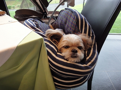 夕食の時間になると、雨が上がりました。 ![]() 歩かせてもよかったのですが、雨上がりに歩かせたままレストランに入るのもどうかな〜と思い、又、新しいペットカートに慣れさせる必要もあったのでキャンディとラナはペットカートに乗せて夕食に向かいました。 ![]() キャンディが嫌がるかな??と心配しましたが、意外にカートの乗るのは嫌じゃなさそうなのでよかったです。 ![]() 共有のドッグランを左手に見ながら、テクテク歩いていきます。 ![]() 2月に来た時は母と「何が植えてあるんだろう??」と思っていましたが、植えてあるのはブルーベリーの木です。 ![]() 実がたくさん生ってます。収穫が楽しみでしょうね。 ![]() ![]() 冬のセピア色の景色も好きですが、この時期の青々とした芝生の色も素敵です。 ![]() テーブルクロスの黄緑色と窓の外の芝生の黄緑色に初夏を感じます。 ![]() 帰りもテクテク歩いて帰るので、今回は食前酒は控えて、アップルジュースをいただきました。 ペットカートに乗せてきたので、いつものキャンディバッグは持参してこなかったら、どうもしっくりこなかったようでキャンディもラナも落ち着かないので、キャンディバッグを取りに部屋に戻りました。 ![]() やはり、慣れたバッグが一番ですね。^^; 夕食メニュー ![]() (クリックすると大きな画像になります) 夕食後、お土産を買いにラウンジへ。 ![]() 前回、買いそびれた「久住 小笠原」焼酎とゆず はちみちドリンクと柚子こしょうを買いました。 ![]() 「久住 小笠原」焼酎には「オープン記念」と書いてありました。ってことは・・・売ってるのは今だけなのかな? 雨雲がどんどん流れて行き、部屋に戻る頃には星も見えてきました。(^_^)v テクテク散歩がてら帰るのにちょうどいいです。 ![]() (帰り道、振り返ってレストランを撮影) ![]() ![]() ![]() みやまきりしまの前にて。 ![]() ![]() ![]() ![]() 犬はデッキやお庭で好きなように遊び・・・飼い主は露天風呂三昧です。 ![]() そして・・・その後はキャンディはキャンディバッグで熟睡。 ![]() ラナはひんやり床の上で爆睡。二人ともぐっすり眠ってくれました。 |