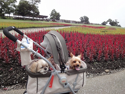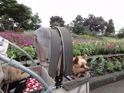 「久住 小笠原」をチェックアウトした後、くじゅう花公園に向かいました。 ![]() 今はケイトウの花が鮮やかです。 ケイトウの花を眺めながら、左手の方へ歩いていくとラベンダー畑が見えてきます。 ![]() こちらでは「早咲き3号」と「ラバンディン」の2種類のラベンダーが植えられています。 ![]() 早咲き3号の方がラバンディンよりちょっと色が濃く、見頃の時期もちょっと早く6月下旬になります。でも、香りはラバンディンの方が強いと言われているので、7月を過ぎても十分楽しめます。 先日と違い、晴れたのはよかったのですが、気温はちょっと高め。 ![]() でも、ラベンダー畑には気持ちいい風が吹いていて、爽快でした。 その風にラベンダーの香りが乗せられてくるので、とてもいい香りがしました。 ![]() 5万株のラベンダーなんだそうです。 ![]() キャンディもラナもお鼻をヒクヒクさせながら、漂うラベンダーの香りを吸ってました。(爆) ![]() ラベンダーを見た後は軽く園内を回りました。 暑くなってきたので、キャンディとラナは歩かせずにカートに乗って移動です。 (カートには冷え冷えシートを敷いて) この時期はラベンダーがメインで他の花はちょっと寂しい感じもしますが・・・ ![]() そんな中、金魚草と・・・ ![]() クレオメが見頃を向えようとしてます。 ![]() 夏の定番のひまわりも8月に向けて、只今 生育中って感じでしたよ。 今から、ひまわりの黄色いじゅうたんが楽しみですね。 (でも、暑いからちびまる家は夏場は家にコモリますが・・・(爆)) 園内を軽く回ったところでソフトクリーム休憩です。 ![]() ブルーベリーソフトです。ブルーベリーがそのまま入っていておいしかったです。 他に紫一色のラベンダーソフトやバジルソフトがありました。 ![]() 蒸し暑くなってきましたが、レストラン横にあるこのスペースは木陰でとっても涼しく過ごせます。しばし、キャンディとラナも木陰休憩です。 ![]() 休憩した後はランチを食べに移動。 今度買ったペットカートは多頭用なので、前後に乗っても外を眺めやすいのでよかったです。又、日差しが強い時は・・・ ![]() こんな感じにフードを上だけ広げると影ができ、多少なりとも暑さ対策になりそうです。 さて、この日のランチは「パスコロ」さん。 ![]() テラスでパンをいただきました。 ![]() 園内で栽培されたブルーベリーを使ったピザやクリームパンはふっかふかで、とてもおいしかったです。 ![]() お隣にはジェラートがおいしい「シャーロット」があります。 おいしいパンを食べて、休憩したら、ちょっと早いですが、出発です。 雨が降らずに天気がいいのもいいんですが・・・気温が高いお昼はあまりウロウロしたくないですからね。(^_^;) でも、まっすぐ帰るには時間もたっぷり残っているので、途中、滝を見に寄ることにしました。 |