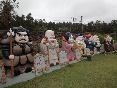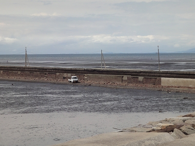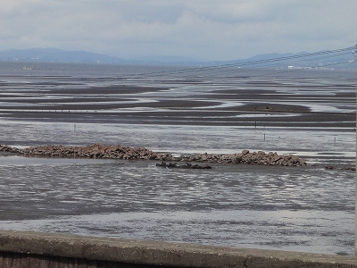 実は・・風香へ行く途中の道で変な後ろ姿を見ました。 何かのハリボテの人形のような・・・? 地元話になりますが、高千穂町の河内の派出所のとなりの空き地に千と千尋の神隠しのユバーバ(湯婆婆)のでっかい置物があります。 なので、このハリボテのような人形を見つけた時 「ここにもユバーバ??」と母親と騒いでました。(爆) 風香から帰る途中、同じ道を通りますので、車を停めて近くまで歩いて行ってみました。(道らしい道でもなかったのですが。^^;) で・・・後ろ姿の正体は? ![]() 七福神でした。(爆) ![]() ![]() 東屋がある小さい公園だったようで、公園の入口にはなぜか? シェパードのような犬の置物もありました。入口の番犬役でしょうか? 母親に見せるために写真を撮り、車に戻って 「七福神だった〜(^^ゞ 小さい公園でこの道からは入れなくて下の方から上がってくる道があるみたい。」と報告しました。 西原村方面へ向かいながら・・・この当たりからあの公園に入れる道があるんじゃないかな??と思いながら車を走らせていると、目立つ看板を発見。(爆) ![]() 確かに七福神って書いてある! しかも「銭の要らないあそび場」だって。ヾ(T∇T)ノ彡☆ギャハハ!!バンバン!! ![]() この看板のあるところから見たらこんな感じになります。 「この道」って書いたところが風香へ行く道です。 写真を撮った時には全くわからなかったのですが、写真をよく見ると・・・ 「やすらぎの丘」の看板の後ろにはやまなみハイウェイにあるような鳥の形に剪定された植木もあったみたいです。(爆) さて、ちょっと変わったものを見て、ウキャウキャ騒ぎながら西原村へ出て、熊本市内を通り、今回の目的の「有明海の大潮を満喫しよう!」の為に宇土へ向かいました。 有明海は干満の差が大きいことは有名だと思いますが、その中でも干満の差がとても大きい大潮が9月8日なのです。 今年の夏だと8月11日(水)と9月8日(水)でどのくらい差が大きいかというと・・・ 8月11日(干潮)15:56 3cm (満潮)22:11 445cm で約442cmの差。 9月 8日(干潮)14:52 16cm (満潮)21:03 444cm で約426cmの差。(地点:三角) 満潮はともかく、私が今回最も重要視したのが干潮の低さです。 数字が小さければ小さいほど潮が引きます。潮干狩りでもするのか??と聞かれそうですが、そうじゃなく、潮が引くととても珍しいものが御輿来(おこしき)海岸という所で見ることができるのです。 ![]() それがこれです。 本当は近くの神社があるみかん山にある景勝地から見ると、もっとこの波状がくっきりと美しく見えるのですが、景勝地への道は狭くてかなりわかりにくいようなので・・やめておきました。 だって、無理して行ってもそれを撮影するだけの腕もカメラも持ち合わせていませんから。(爆) ![]() なので、私たちは車が停めやすい海岸にある公園から見ました。 それでも初めて見る私たちには絶景です。 ![]() キャンディとラナも土の上を歩けて、ドライブの息抜きをすることもできましたし。 ![]() この日の干潮時間は14:52で私たちが着いたのは14時頃です。 ![]() 母も初めて見る風景だったので「海がこんな風になるの??不思議??」ととても喜んでました。 ![]() 満潮時間になると車が停まっているあたりと言わず、その上のコンクリートの道も海の下になります。海水の高さに426cmの差があるというのもうなずけます。 ![]() こうして、すぐ近くに海を見ながら歩くのは気持ちよかったです。♪ 私たちが車を停めた公園は宇土マリーナの手前にありますが、この公園と宇土マリーナの途中には景色のいい場所によくあるパーキングエリアがあります。 パーキングは海岸側にありますから、熊本市側から天草に向けて走った時は反対車線になりますから、パーキングエリアに入る時は気をつけてくださいね。 でも、海岸はよく見えますよ。(^_^)v |