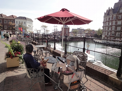 そろそろお腹がすいてきたので、ランチにしましょう。 ![]() フォレストヴィラのすぐ近くのビッケンビッケンもペット連れで佐世保バーガーが食べられますが、ユトレヒトにある佐世保グルメストリートでも食べられますので、とりえあず、ユトレヒトに戻ることにしました。 ちなみに、昨日の夜宿泊した「はな一」も佐世保グルメストリートに出店してます。 ![]() 佐世保グルメストリートはカナルクルーザーの船着き場の目の前にあります。この白いパラソルがテラステーブルです。 ・・・・が! 実際に行ってみて、テーブル席の案内板を見るとペット連れ可のテーブルはパラソルから向こうの ![]() このエリアになってました。 この日は天気もよく、日差しも強くなってきていたので、影のないテーブルはさすがにご遠慮したい・・・。 ![]() ![]() ということで、急遽、午前中にお茶したカフェデリ ブリュの隣にあるメイファンで食事することにしました。 ![]() 秋とは言え、やはり昼間はパラソルは貴重です。(^^ゞ ![]() 母は海老チリ。私は焼飯セットです。 料理はテラス席まで運んできてくれますが、お水はセルフサービスなのでオーダーした時に自分で持っていきましょう。 ![]() (食事中のラナ) ![]() 「食べた後、食器は運んだ方がいいですか?」とお店の人に尋ねたら 「もし差し支えなければ・・・運んでいただけると助かります」と言うことでしたので、食後は店内に食器を返却にいきました。まあ、店内で食事した時も返却口に戻しますからね。(^_-) ランチの後はアレキサンダー広場へ。 ![]() 花時計の前での記念撮影は外せませんね。(爆) ![]() ラナさん!ラナさん!カートの箱乗りは禁止ですよ! ![]() ラナ「今日は私の誕生日だからいいの!!」 ![]() アレキサンダー広場から少し歩いたミュージアムスタッドにはGMAレストランがあります。こちらのテラスもペット連れで食事できます。 |