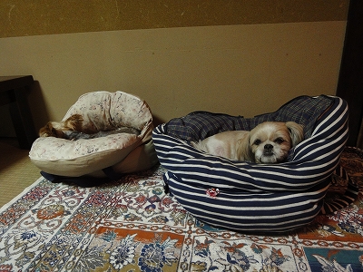夕食は予約時にステーキ、すきやき、和風会席と好きな物を選ぶことができます。 実は私・・・煮た肉が苦手なので、すきやきもしゃぶしゃぶもNGです。(^^ゞ ![]() ステーキは母が「夜、ステーキを食べると翌朝まで、お肉が胃に残りそう(爆)」というので、無難に和風会席でお願いしました。 松園は夕食も朝食も部屋食です。 仲居さんはみなさん、犬好きのようで・・・キャンディもラナもいっぱいナデナデしてもらいました。 特にラナは担当してくださった仲居さんがすごく好きになったようで、仲居さんが入ってくると尻尾が振りきれんばかりにフリフリ! 「ナデれ〜 ナデてくれ〜」と仲居さんのそばから離れず。 お腹は出すわ!くっついていくわで、大興奮状態。 えっ?その時、キャンディはどうしてたかって?? 「我関せず・・・」って感じで、何事もないようにキャンディバッグに入って寝てました。(爆) ![]() 松園の「自家製梅酒」というのがあったのでいただいてみました。 とってもおいしかったので、その自家製梅酒を10年寝かせた「古酒 梅酒」も飲んでみたいと思って注文しましたが、残念ながら既に完売してました。 10年物ですから、量が限られるんでしょうね。次回、お泊りした時はまっさきに注文したいと思います。(爆) 夕食が終わった後、外に出かけてみました。 ![]() ![]() 松園「フロント」 ![]() ![]() 松園から歩いてすぐのところに「シーボルトの湯」があります。 ![]() 川沿いの橋のたもとに建っています。 ![]() 「シーボルトの湯」の川を挟んだ向こう岸には嬉野温泉公園があります。 公園があることは知っていましたが、夜、こんな風に照明が当たっているのは知りませんでした。 ![]() 夜の散歩も不自由しませんね。 ![]() お散歩から戻ったら・・・2匹とも就寝です。 |