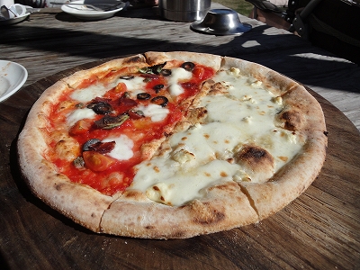 次に向かったのは湯布院にある「櫟の丘」 平日ではありますが、人気店なので開店時間の11時過ぎに到着できるように向かいました。 ![]() 湯布院ICからすぐです。 ![]() 看板から左折して上り坂を上がって行った先にお店があります。 ![]() ![]() ![]() 犬連れはテラス席になります。 ![]() テラス席はこんなに素晴らしい景色が見れるので、天気のいい日は犬連れじゃないお客様もテラス席を選ばれます。なので、犬連れで行く時は開店直後に行くことをおススメします。 ![]() 私たちが行った日は平日だったにも関わらず、私たちが席に着いた後、次々にお客様が来て、12時前にテラス席は満席になりましたから。(^_^;) ![]() 焼き上がりを待つまでの時間、ちょっと歩かせてもらいました。 ![]() 11月だからテラスは寒いかな?と心配しましたが、この日は上着も要らないくらいぽかぽか陽気でよかったです。 ![]() まずはたっぷりキノコとツナのトマトソースのピッツァ。 ![]() キャンディもラナもピッツァの匂いに釘付けです。(爆) ![]() 2枚目は人気メニューのカプリチョーザとクアトロフォルマッジョのハーフ&ハーフ。 チーズがおいちぃ〜♪ ![]() 時間が早かったので2枚食べきれる?? と心配しましたが、食べ始めたらペロリとなくなりました。(爆) パスタもおいしいので食べたかったんですけどね〜 これ以上食べたら、ヤバそうなのであきらめました。(爆) |