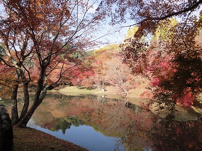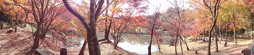 去年は用作公園の見頃の時期にかのやバラ園に行ったので、紅葉の見頃から2週間も前に訪れました。ほとんど紅葉していないのを承知の上での訪問でしたが、気持ち的にはやはり、がっかり。 今年はそのリベンジです。 週間天気予報では20日(土)は雨。22日は晴れじゃないけど曇りで雨マークがなかったので、22日にお休み取って行くつもりでした。土日は観光客が多いですし。(^_^;) しかし、土壇場の前日になると天気予報が 「土曜日はピーカン! 22日は雨」の予報に逆転。 しかも土曜日の気温は平年よりやや高めとありましたので、これを逃してはもったいない!・・・と土曜日へ変更です。 天気のいい土曜日ですから、人手も多くなるだろうと予測して10時過ぎに用作公園に着くように出発。幸い、まださほど車も多くなく、難なく第1駐車場に停めることができました。 ![]() 駐車場に停めて公園へ歩いて行きます。散ったもみじが赤いじゅうたんのように敷き詰められていて・・・視界全体が赤色に見えます。 ![]() キャンディやラナも「カサカサ・・」とした落ち葉の感触と土の感触が気持ち良さそうです。 ![]() 「側溝に注意」ってありますよ。キャンディ。 もみじのじゅうたんを楽しむのはいいですが、落っこちないでくださいね。(爆) ![]() (クリックすると大きな写真で見られます) ![]() 去年、紅葉していない時に来た時は「思ってたより狭い公園だな〜」という感想だったんですが、こうして紅葉の時に来ると歩いても歩いても目の前にもみじが飛び込んでくるせいか? 広〜く感じました。 ![]() 全く同じ公園なのに人の感覚って不思議ですね。(^^ゞ ![]() 自然がいっぱいのところに来ると、キャンディたちの興味も倍増するようです。 ![]() ![]() もみじのじゅうたんは公園全部に敷き詰められてます。 先週訪れた方の写真では紅葉はとても綺麗でしたが、落ち葉は少なく地面は緑色が多かったように思いました。 落ち葉が増えるってことは・・・終わりかけって話もありますが 私はこのくらい落ち葉があった方が好きです。 ![]() 神様からのプレゼントのような青い空のおかげで池には鏡のように紅葉が映りこみます。 ![]() 緑、赤、オレンジ、黄色と青空♪ ![]() ここは1年前に訪れた時に写真を撮った場所です。 ![]() キャンディ「去年とは全く別のところに来たみたい」 ![]() ![]() (クリックすると大きな写真で見られます) ![]() もみじ祭りの間はおそばやおでんが食べられるお店や・・・ ![]() 野菜やお団子の販売をしてます。 作りたて・・・って言葉に釣られてお団子を食べました。(爆) ![]() ばぁちゃんちに行くと、いつもこの「だご」(うちでは「だんご」ではなく「だご」と言います)を食べさせてくれました。懐かしいな〜 用作公園を出る頃は第1駐車場は満車。 やはり、ここへは午前中に来ることをおススメします。(^^)v |
