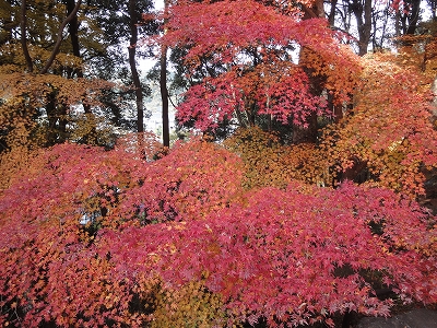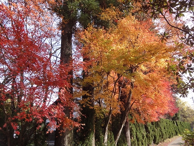 次に向かったのは野津町にある普現寺。 犬飼バイパスを走るつもりでいたんですが・・・ついつい昔の肥後街道の道に入っちゃいました。(爆) 「失敗したな〜」と思いながらも「まあ、数分しか違わないし・・・いいか。」とあきらめて川沿いの道路を走りましたが、道路沿いのあちこちが紅葉していて意外に綺麗でした。 バイパスができた為、走る車もほとんどなく快適に走れますし、多少のカーブは逆に運転の楽しみにもなりました。 急がないドライブは・・・バイパスを使わないっていうのもアリかもです。(^_-) ![]() 先週末がモミジの見頃で土日はモミジのライトアップもありました。 多少、見頃は過ぎていましたが・・・逆に落葉が地面いっぱいでとても綺麗でした。 ![]() 延岡方面から行く場合は普現寺の入口に看板があるのでわかりやすいのですが、臼杵方面から行く場合は寺の入口に看板がなく、見落としやすいので気をつけて。 狭い坂道の入口を上がっていった先に駐車場があります。 ![]() 駐車場前の紅葉です。 上の駐車場には10〜15台?くらいしか駐車できませんが、10号線沿いに広めの駐車場があります。見頃で混雑が予想される時は下に車を停めた方が無難です。 ちなみに駐車場までの坂道はそれほど長くはありませんが、道幅は対向車と離合できないくらい狭いです。 ![]() ![]() こちらのお寺には吉四六(きっちょむ)さんのお墓があります。 吉四六さんって九州の人しか知らないかな? 私が小さい頃は吉四六さんの民話を耳にしたものです。今の小さい子は吉四六さんのお話を読み聞かせしてもらえてるのかな〜? ![]() ![]() 私・・・紅葉も好きですが、落葉ってホント好きです。(^_^)v ![]() ![]() ![]() ![]() ![]() 予想していたより、まだまだ見頃だったと思います。 モミジは駐車場からすぐに見ることができますので、高齢者や小さなお子さん連れでも気軽に紅葉を見ることができます。 足腰に自信のある方は・・・(爆) 吉四六さんのお墓まで歩くといいお散歩になりますよ。 |