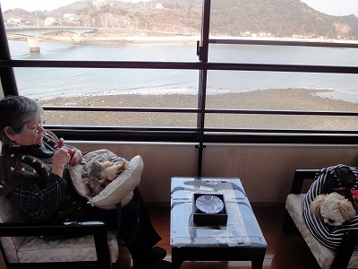 三連休の中日だったので、熊本市内が渋滞するだろうと予想できたので、お茶の後はまっすく、宿泊するお宿へ向かいます。予想通り、車が混雑することがありましたが・・・ 三連休の割りには渋滞が少なかったように思いました。天気がイマイチだったせいもあるのかな? ![]() 本日のお宿は一号橋を渡って、天草に入ったらすぐの野釜島です。 天草四郎メモリアルホールを右折して道なりに進んだ先に見えるこの橋のたもとにあります。 ![]() 「旅館 せと平」です。 今回、こちらに宿泊した目的は・・・? そう冬と言えば ![]() ふっぐ〜♪ ふぐ料理を食べに来ました。 延岡からだと近くの臼杵市がふぐで有名なんですが、残念ながら犬連れで宿泊できる宿を見つけることができません。臼杵だと日帰りでも行けるんですが、どうせならゆっくりしたいという母の希望もあり、今回、天草まで足を伸ばしました。 いつもお泊りする藍風亭さんも1月いっぱいは「ふぐ刺し」を出してくれるコースがあるので、どちらに行くか悩みましたが、まだ、せと平には泊まったことがなかったこともあり 「この機会にお泊りしてみましょ」と母と意見が一致しまして、こちらへ宿泊することになりました。 ![]() 休日前料金がないので、平日でも三連休でも料金が一緒なんですもん!(^◇^) ![]() お部屋は3階の和室。犬連れなので畳ゴザが敷いてあります。 ![]() 3階ですが、エレベーターがありますから高齢者連れでも問題ありません。 ![]() 板間にはテーブルと椅子。椅子の後ろに冷蔵庫がありました。 ![]() 部屋は洗面台とウォシュレットトイレ付き。 ![]() お風呂は1階の大浴場になります。ちょうど、私たちだけだったのでパチリ。^_^; 温泉ではありませんが、湯船にハーブが入れてあるハーブ湯です。 ![]() 海辺の角に建ってますので、部屋から海がよく見えます。 島だからでしょうか? 橋の下の海(潮?)の流れが変わるのが、部屋から見ててわかるんです。 夕方「あっ!こっちに押し寄せてる・・・」と思ったら、 翌朝は「あれ?海が橋の向こう側に流れてない??」とか。 母が「天草に来るといろんな海を見ることができるから、本当に楽しい」 と今回も喜んでました。 ![]() そうそう、浴衣がなかなかかわいかったです。 ![]() 我が家はいつも通り、キャンディ・ラナ用のカーペットを敷きました。 ![]() これ敷くとキャンディたちもリラックスして過ごせますから。(^_^)v ![]() ラナのケージの中をチェックしてみたり・・・ ![]() まったりしたり・・・ ![]() 完全にリラックスしきった顔してます。_(⌒▽⌒)ノ彡☆ばんばん! ![]() ラナといえば・・・ すでにラナバッグに入って眠ってました。(爆) |