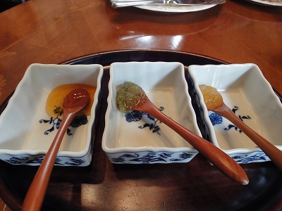 病院の診察が終わった後はランチを食べに湯布院へ。 ![]() 昨日は濃霧で真っ白の景色でしたが、この日はソコソコ、見えました。 ![]() 狭霧台は何度も通るので、ここ数年、立ち寄ったことはありませんでしたが、病院が早く終わって時間に余裕があったので、ひさしぶりに停まりました。 ![]() 相変わらず・・・風が強かったですが。(爆) ![]() この日のランチは湯布院インター入口近くにある「風曜日」へ。 ![]() 風曜日に着く頃から、また雨がポツポツ降り出しました。 ![]() こちらの高台にはドッグランがあるので、時間も余裕がありましたし、天気でもよければ遊ばせたかったんですが・・・ ![]() ランチは12時半くらいに予約していたのですが、病院が早く終わったので12時には着いてしまいました。 個室の暖房が暖たまるまで・・・こちらの部屋で待たせていただきました。 こちらは大きな暖炉があって、暖かいですから。(^_^)v 前回、風曜日さんに来たのは3年くらい前になりますが 「確か、以前にも来ていただいたことがありますよね?」と声をかけていただきました。 なんだかうれしくなります。(#^.^#) ![]() こちらにはいろんなジャムが売ってます。 1月にWaletさんでジャムを買い損なった分、こちらで買いました。(爆) ![]() 買ったのはいちじくジャムと人参とりんごのジャムを2つ。 それとブルーベリーのコンポート。あと、ブルーベリージャムの小瓶をサービスでいただきました。 ![]() 「天気も悪くなってきたし・・・他のお客さんも来ないかもしれないから このまま、こちらのテーブルでもいいですよ。」 と言っていただきましたが、後で他のお客様がいらしゃった時に犬連れの私たちがドーンといたら申し訳ないからと丁重に辞退して・・・(爆) ![]() 個室の方へ移動しました。 その後すぐ、ランチのお客様がいらっしゃいました。 虫の知らせでもあったのかな〜私。(爆) ![]() ![]() 個室にはピアノが置いてあります。 ![]() ![]() 個室だと他のお客様と一緒になることはないので、シャイなラナにはよかったかもしれませんね。 ![]() ポークソテーとスモークチーズのランチです。 ![]() ![]() ゆずとカボスと・・・後、もうひとつなんだってっけ?(爆) さっぱりしていておいしいジャムでした。 ![]() デザートのヨーグルトには私たちが買ったブルーベリーのコンポートがかかってます。 粒がとっても大きくって、とてもおいしかったです。 |