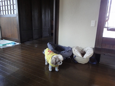 翌朝は天気は上々ですが、風が強かったです。 阿蘇ですからね〜 延岡よりもかなり寒かったですね。 ![]() でも、寒いといっても季節はやはり春になろうとしてます。(^_^)v ![]() 天気がいいのがわかったのか? ラナもキャンディも朝からそわそわ気味。(爆) ![]() ![]() 朝食前にドッグランへ。 ![]() ドッグランでリフレッシュした後は散歩がてら、宿内をひとまわり。 ![]() 朝食です。前に来た時は朝食は座敷の方だったので、キャンディたちはお留守番でしたが、今回は朝食もほがらかだったので、キャンディたちも一緒です。 ![]() 食後は無料サービスの珈琲を。 ![]() キャンディ「わたしたちには珈琲はないのね・・」 ![]() 部屋に戻って、チェックアウトの時間までのんびり過ごします。 ベッドにゴロンと横になって・・・天井を眺めたり。 ![]() キャンディも・・・ ![]() キャンディバッグに戻って、ちょっと一眠り。(爆) ほぼ5年ぶりの御宿 小笠原の宿泊は前回のようにトラブルもなく、楽しむことができました。気のせいでしょうか? 5年前の温泉が出なかった日にお泊りした時に比べて、スタッフの方もにこやかだったように思います。 やはり、5年前の時はボイラーが故障するというイレギュラーな状態(しかも雨降りだったし)だったから、その忙しさがつい、顔や態度に出てしまったんでしょうね。(^^ゞ 前回は洋室、今回は特別室に泊まりましたが、母と話した結論としては 「特別室に泊まるなら、あと1万貯金して、久住の方に行くかな」です。 こちらの特別室に悪いところがあるわけではないのですが、母の感想としては 「正直、久住に比べると室内にいても目離しができないから休んだ気がしなかった」ということでした。 床暖房のフローリングと和室、内湯に露天風呂と基本的な部屋の作りは特別室も久住もほとんど変わりません。ではなぜ、片方はリラックスできて、片方はリラックスしにくかったのか? 理由は和室とベッドの位置の違いだと思いました。 ![]() 【写真:久住】 久住はベッドが段の上にあり、和室はフローリングと段差なくフラットになっていますが ![]() 【写真:阿蘇】 阿蘇の方はベッドが下で和室が段の上にあります。 しかも、和室への段差は高く、2段の階段を使いますが、人にとっても、犬にとってもこの段差はちょっと怖いものがありました。結構、フローリングの床が滑るので、下りる時に「ズルッ!」と滑るんじゃないかという怖さがあり、特に母は和室には1,2度しか上がることはありませんでした。 ![]() 【写真:久住】 久住にも段がありますが、1段だけでなので、上がり降りで怖さを感じることはありません。 母や私が和室に上がれば、当然、キャンディやラナも上がりたがります。 でも、しばらくすると飽きて和室から下りたがります。その時、ペット用の階段を使っても勢いつけて下りていくのでフローリングの床で前のめりになることもあり、ヒヤヒヤしました。 なので、必然的にフローリングの方で過ごすことになりましたが、 ![]() 【写真:阿蘇】 フローリングには化粧台についている椅子しかありませんので、ベッドの上に座ることが多くなりました。そうなると・・・当然、ラナも母と一緒にベッドに乗りたがります。 ベッドカバーがありますから、まあ(^^ゞベッドに乗ることまではいいのですが・・・ ベッドに乗った後、ベッドから飛んで下りることが非常に困りました。 下りたそうにしている時は抱っこで下ろしましたが、そうなると母自身が気を抜くことができず、それが「休んだ気がしなかった」という言葉につながったようです。 その点、フローリングと和室に段差がない久住の方では、私たちがフローリングにある椅子に座っていれば、ベッドの方に行きたがりませんから、部屋で過ごす時に段差の上がり下りの心配が全くありません。 ![]() 【写真:久住】 キャンディとラナの活動範囲もフローリング+和室の広さとなり、自由に歩ける範囲も広くなる上に、テラスへの窓を開けておけば、テラスや庭も自由に遊ばせることができました。 実際、宿泊してみてこの差は大きかったように思います。 確かに久住は宿泊料金としては高いので、うちのような貧乏家(爆)は年に何度もお泊りすることはできませんが、特別室も久住に比べれば若干安いとしても、他のお部屋に比べると高いので、そう簡単にポンポン宿泊はできません。(^^ゞ そうなると・・・どちらを選ぶか?ということになりますが、我が家の場合は1万円高くなっても、安心して過ごしやすい久住に軍配があがったかな?って感じです。 その中には温泉が掛け流しで、いつでも入りたいと思った時にすぐに何度でも入れるということも含まれてます。 特別室の売りは、和室と露天風呂、あと車が横付けできることにあると思いますが ・和室でのんびり過ごすことは難しかった ・露天風呂と内湯のお湯を同時に入れることは避けた方がいい となると、私たちにとっては特別室で過ごすのも洋室(ツイン)で過ご