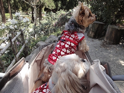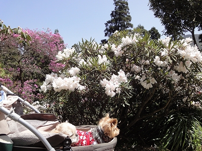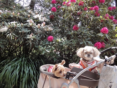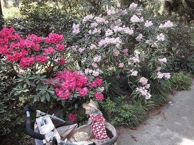お腹いっぱいになったところでしゃくなげの散策です。 ![]() キャンディとラナは途中、カートを降りて土の上を歩いたり・・・ こうしてカートに乗ったり。 ![]() ![]() ![]() ラナ「何? あれ 何??」 ![]() キャンディ「なんだろうね〜」 風が吹いて、木が揺れるのがおもしろいのか? 見るものが珍しいのか? 二人とも興味津々です。 ![]() 展望台から見た御茶屋さん付近です。 これからこの周辺がしゃくなげの花でいっぱいになりますよ。 ![]() 御茶屋さんの回りはすでに満開に近いですね。 ![]() 展望台にも鐘がありま〜す♪ ![]() 展望台からトコトコ歩いて下りるとさっき上から見た御茶屋さんが見えてきます。 ![]() 歩き疲れたところでちょうどいい休憩です。 ![]() 歩いて暑くなったのでアイスコーヒーをいただきました。 でも・・・アイスコーヒーなのに氷も入ってなくて。(^_^;) 他に冷たい甘酒もあるそうです。 あと、去年食べた、しゃくなげソフトもあります。(爆) ![]() 今年は早咲きのしゃくなげの開花が遅れ、早咲きが咲ききる前に中咲きが咲き始めるという不思議な現象が起こってるようです。 ![]() 3月も凍えるくらい寒かったし、4月になっても冷え込むことが多かったですからね。 花もいつ咲いていいか悩んだんでしょう。 ![]() ![]() このあたりまで来ると・・・キャンディはすでに熟睡モードです。 カートの中でラナがガチャガチャ動いても、全く動じず、眠ってます。(爆) ![]() ラナ「よく眠れるよね〜」 ![]() しっかし、逆にラナはおでかけの時、寝ないよね〜(^_^;) ![]() ![]() しゃくなけの森を一周して苗木販売のところに戻り、母が黄色と赤の苗木を買いました。 ![]() さあ、綺麗なしゃくなげもいっぱい見ましたし、そろそろ帰りましょうか? ラナ♪ |