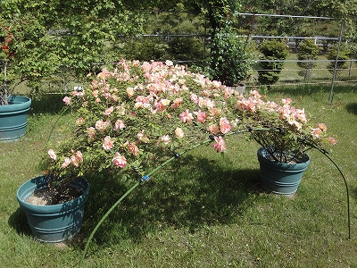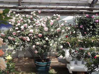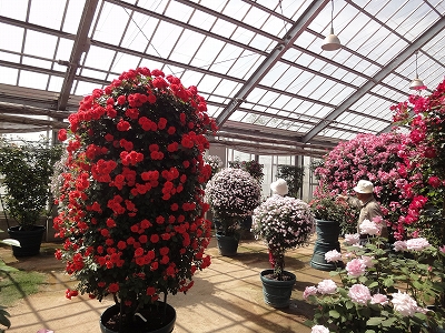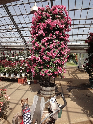 ![]() 小国町から北上して、日田市天瀬町にある「ローズヒルあまがせ」へ向かいました。 ランチしたお店から車で30分ちょっとで着きます。 ![]() 到着すると、まず駐車場横にあるアーチに目が奪われました。 ![]() 入園料は300円。リードをつけていればペットも入園OKです。 ハウスの広さは阿蘇市の「はな阿蘇美」とほぼ同じくらいですね。 ![]() ここの特徴はなんといっても鉢植えってことでしょうか。 ![]() 鉢植えでこんなに大きく育てることができるなんて・・・尊敬です。 ![]() ![]() ハウスの中はバラの香りでいっぱい。 ![]() ハウスの外は芝生のお庭になっています。ちょっと木陰で休憩です。 ![]() お庭のバラはこんな風に誘引して広げた形にしているバラがたくさんありました。 高く塔のようにするのもいいですが、低く広げてバラを見せるのもいいアイディアですね。 ![]() ![]() このピンクのバラもこんなに大きいのに鉢植えです。 ![]() アンジェラも見事でしょ? ![]() 入口付近にある鉢は販売されてる鉢です。 価格もとってもお安く、2,000円以下の鉢がたくさんありました。 ![]() ローズヒルあまがせの外は広〜い芝生がありました。 ![]() ちょうどいい木陰もありましたので、バラ鑑賞につきあってくれたキャンディとラナの休憩をここで取りました。 風が吹いて気持ちよかったですよ。 ハウス内のバラはちょうど満開。 外のバラは2〜3分咲きというところでした。外のバラは6月の初旬あたりが見事になりそうです。 |