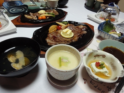 この日の宿は嬉野温泉の松園です。2回目の宿泊です。 ![]() 宿まで1時間40分ほど、車に乗っていましたので、お部屋に入る前に まずはキャンディとラナのお散歩・・・とすぐ近くの温泉公園へ行きました。 ![]() 温泉公園はシーボルトの湯のすぐ裏になります。 ![]() 川沿いにある芝生の公園で、松園からすぐ近くなので散歩にちょうどいいです。 ![]() お部屋は前回と同じく1階の「松風」。 ![]() ![]() 母が杖ですから、我が家は予約の時に1階をお願いしてます。 ![]() 夕食のお品書きです。 ![]() 前回は和風会席でしたので、今回はステーキにしました。 ![]() 個人的な好みでしょうが・・・私は和風会席の方が好きだったかな。(爆) ![]() 去年の秋、10年熟成させた梅酒を飲みそこなったので、今回はチェックインの時にお願いしたのですが、もう今は在庫がなくなって販売していないそうです。どんな味だったか、飲んでみたかったな。 ということで、前回同様、自家製梅酒と・・・ ![]() 果肉の入ったトロトロ梅酒をもらいました。 ![]() 鰹のフルーツサラダ ![]() デザート ![]() 夕食はお部屋でいただきますので、キャンディたちも一緒です。 ![]() すでにぐっずりお休みですが・・・(爆) |