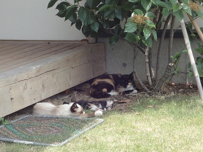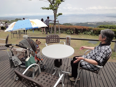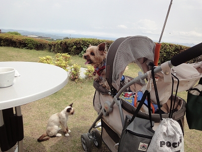「さて、ランチをどこで食べようか?」 大分市内に寄ってもいいけど、土曜日だから街中は車も多いんじゃないか?? そのまま高速に乗って帰った方が楽じゃないか? ![]() ってことで、別府湾SAの「茜屋」でランチすることにしました。 ![]() 人用のパラソルはありませんが、キャンディとラナには手ぶらんブレラで影を作ってあげられます。人間は我慢!我慢!(爆) でも、ここは高台なので思ったほど暑くなく・・・風は気持ちよかったです。 ![]() 前に来た時にも猫さんがいましたが、なんと!子猫さんが2匹いました。 めちゃ!かわいい。ようやく目が開いたくらいだったので、生後2週間ってとこでしょうか。 ![]() こちらはちょっとお姉さん(お兄さんかな?)猫みたいで、体つきから生後半年くらいかな?と。 ![]() テーブルの下まで挨拶に来てくれました。 ![]() キャンディもラナも猫には慣れているので、近づいて来ても決して吠えることはありません。にゃんこの方も人慣れ、犬慣れしているようで、怖がる様子は全くありませんでした。さすが、看板猫! ![]() ランチは2,000円の特製天婦羅丼が1,500円になっていたので、それを注文。 しかし・・・ でてきた天婦羅の中のタケノコは竹の親じゃないかと思うくらい固くって・・・(爆) お蕎麦にすればよかったかな? とちょっと後悔。(^_^;) 食事を済ませて、会計するのに店内に入ってみると・・・ レジの前にはテーブル待ちのお客様がズラ〜っと。 私たちはテラスだったから、逆に早く食べることができたみたいです。 ![]() 茜屋でランチした後はコーヒーを飲みに「B-Speak Cafe」へ。 ![]() ![]() この日は霞んでなかったので、遠くの方までよく見えました。 ![]() ラナ「よく見えるにゃ〜」 ![]() キャンディ「ふん!そんなもの見ても、お腹はいっぱいにならないのよ」 ![]() この日はまだコーヒーを1杯も飲んでなかったので、暑くてもホットコーヒー。 他に何か冷たいものでも・・・と思いましたが、さすがにランチの後にパフェという気もなれず、お店の方に「冷たいものをちょっこっとだけ・・・みたいな物はありませんか?」と尋ねると・・・ ![]() この「季節のとっておき」をススメてくれました。 ロールケーキに抹茶アイスがセットになってます。 二人で1つ、注文したんですが、量的にはちょうどよかったって感じです。 ![]() ![]() ![]() お茶をした後は家に帰るだけなので、車に乗る前にキャンディとラナを木陰で歩かせました。(ランは暑そうだったので(^_^;)) ![]() キャンディが来ているTシャツは濡らして涼しいTシャツです。 いつも来てるTシャツより乾き方が遅いようで、涼しさは長続きしてるようでした。 ただ、乾いた後、水分を補給する時は裏返しして内側に水をかけるないと、上からだと水がしみこみにくかったです。一旦、脱がせて水を含ませるのが一番いいんでしょうが・・・。 ![]() 帰り道、杜のT Shopで休憩。 ![]() いつも食べるブルーベリーやカリカリ桃は在庫がなくなってしまったみたいで売り切れでした。夏が過ぎて今年の実が熟すのを楽しみに待ちながら、バニラを食べました。 3日間、雨が降ることなく、満開の薔薇を見られて本当にラッキーでした。 ハウステンボスの広さを考えると・・・さすがに来年は厳しいかな?(去年の秋より今年の方が足が疲れたらしいので)と思いますが、母が満足できるだけの薔薇を見せることができたのは本当によかったかな〜と思いつつ、帰路についたのでした。 |