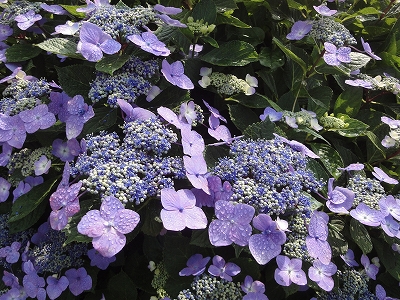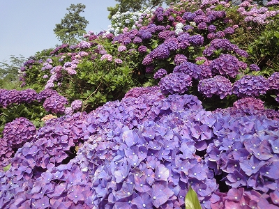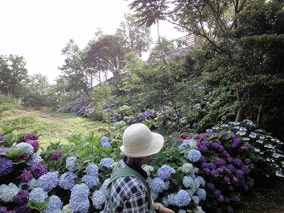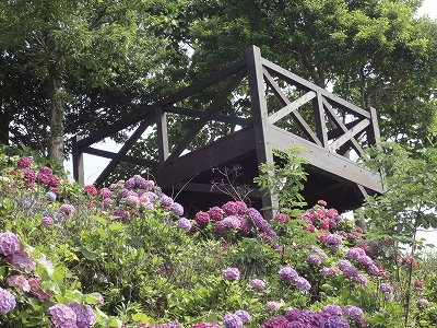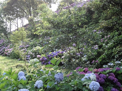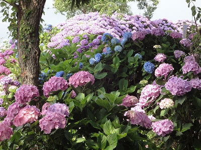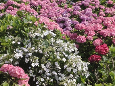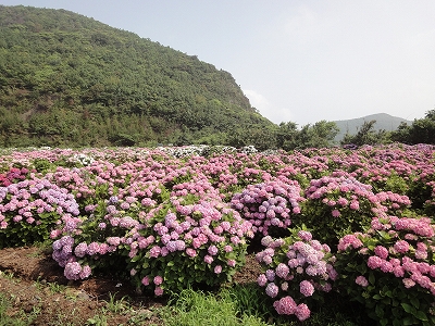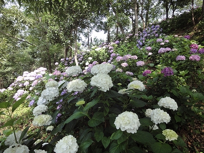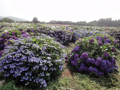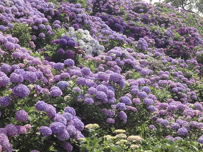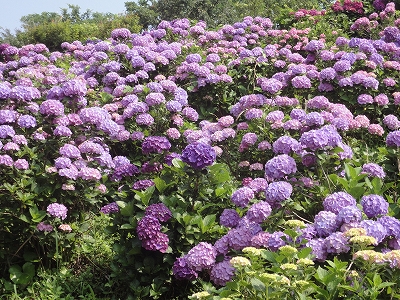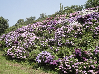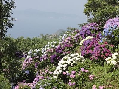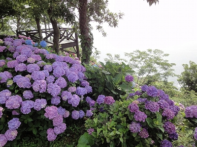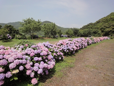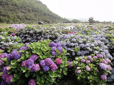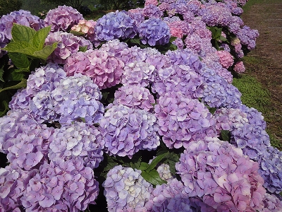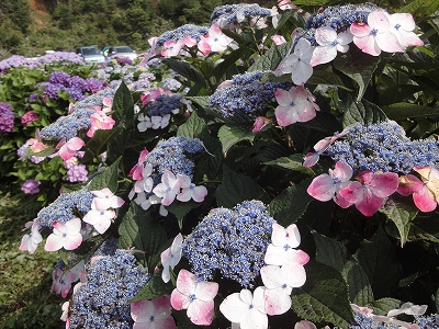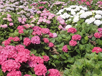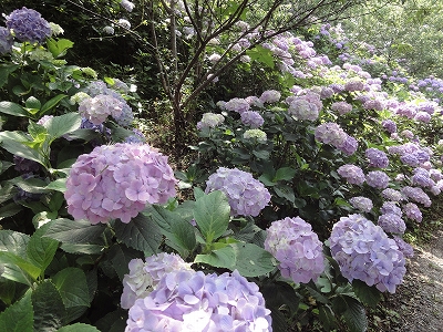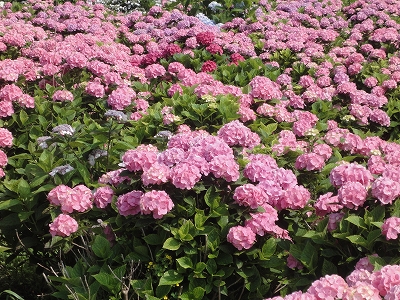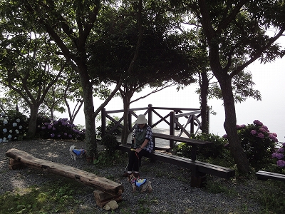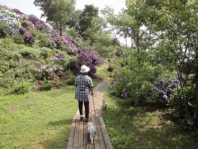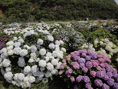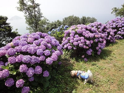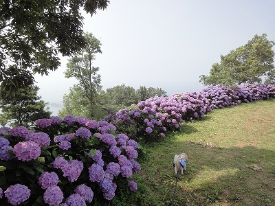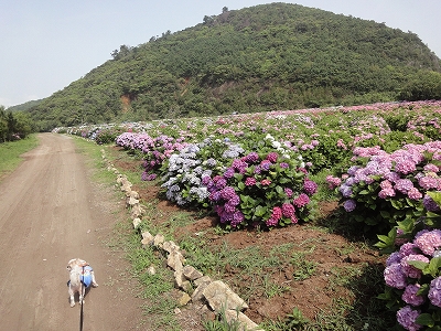今年も門川町にある桃源郷岬へあじさいを見に行きました。 国道10号線に大きな看板が何箇所か設置されているのを見つけていましたので 「今年は去年より来場者が多いかも?」と思い、開園時間ぴったりの9時に訪れました。 (できるだけ早い時間の方が暑くないですし。(^_^;)) ![]() なので、一番乗りとはいきませんでしたが、三番乗りくらいでした。(爆) ![]() ![]() ![]() ![]() 今年もあじさいはとても綺麗。 ![]() ![]() ![]() ![]() なんだか、今年は去年と比べて、あじさいの花の色は赤色が強かったような気がします。 去年、植えつけていたハス池側の山の斜面のあじさいも綺麗に咲いてました。 来年はもっと株が大きくなって、今年より鮮やかになるでしょうね。 地面はほぼ乾いていましたが、ところどころ水の溜まってるところもあります。 キャンディもラナもそういう場所を好んで歩こうとするんですよね〜(爆) ヒンヤリ感とあのニュチャッとした感覚が気持ちいいんでしょうね。 自分が小さい頃、裸足で泥の中に入った記憶がよみがえります。(^_^;) ![]() 駐車場前のあじさいを見た後は、海の方へ向かいます。 ![]() ![]() 歩く道筋に手作りのベンチが設置されてました。 ![]() 天気がよかったので、海も綺麗です。 涼しい海風が通る木陰の道を歩いた先は・・・ ![]() 今年も一面のあじさいです。 ![]() ![]() やはり、こちらも今年は赤色が強く出たのか? 去年の青色より花の色が紫色のように見えました。 ![]() ![]() ![]() ![]() ![]() 同じあじさいでも年によって、違った色を見ることができるのは楽しいです。 海側のあじさいの場所でも去年にはなかった・・・ ![]() 歩きやすいように木製のステップ。 ![]() ![]() 雨の日は靴が汚れないし、歩きやすいし・・・なかなかGoodです。 ![]() そして・・・ ![]() 桃源郷岬で私がもっとも好きな場所へ。 ベンチの数も増えて、ベンチも作り変えられていたので休憩しやすく、とてもよかったです。 ![]() 今年も墨田の花火が綺麗に咲いてました。 ![]() ![]() 展望テラスも作られてました。 ![]() ![]() ![]() このテラスのおかげで斜面のあじさいがより見やすくなりましたし、海の眺めも最高です。 ![]() 母とキャンディ、ラナにはこの涼しい場所で座りながら、あじさい鑑賞をしてもらっている間に、私だけ階段を上がって一番高い場所からのあじさいを見に行きました。 ![]() ![]() ![]() 写真で見ると下のあじさいの色がそれほど鮮やかに見えませんが、実際には「わ〜\(◎o◎)/!」って声が出そうなくらい、綺麗でした。 ![]() ![]() ![]() ![]() 平日にも関わらず、私たちが一回りする頃には次から次に見学者が増えてきました。 遠見山展望台との三叉路からは道も狭く、舗装もしてなく側溝もあるのでできれば対向車に会いたくないのですが、帰り道、3台の車と遭遇してしまいました。 ![]() ![]() ![]() ![]() 昔は「人知れず・・・」の場所でしたが、年々、有名になっていくと訪れる観光客も増えるんでしょうね〜 ![]()