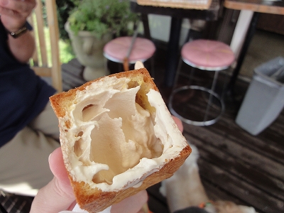 1年ぶりに久住 小笠原にお泊りに行きました。 今の季節は暑いので、ランチをするだけで特にどこか観光する予定はなしです。(^_^;) ![]() まずは、久住の「Country Cafe いずみや」さんで名物ソフトを食べに寄りました。 ![]() ここでおススメはソフトの小箱。 9月30日まで期間限定でソフトのコーン部分がクッキーで作った小箱になってます。 他にはないここだけのオリジナルです。 母親はここの名物の黒胡麻ソフト。とっても香ばしい♪ ![]() 私は生キャラメルソフト。こちらもすっごくおいしいです。 ![]() ソフトを食べていくと・・・パタンと蓋がしまい、まさしく小箱に。 ![]() 閉じた蓋を食べて・・・中のソフトも食べた後は容器になっていた箱をパクリッ! ![]() 胡麻入りのクッキーで、箱のクッキーもおいしい〜 久住で絶対、おすすめの一品です。 ![]() お店の方に「犬連れですけど、テーブルでソフトを食べてもいいですか?」と聞いて OKをいただいたので座って、ゆっくり食べることができました。 ![]() テーブル席は2つあります。 ![]() 私たちが行った時はたまたま、お客様が誰もいなかったので、キャンディやラナを連れていてもゆっくり過ごせましたが、私たちが食べ終わって車に戻ると入れ違いにお客様がドドドッと増えました。(^_^;) さすが、人気店ですね。(爆) |