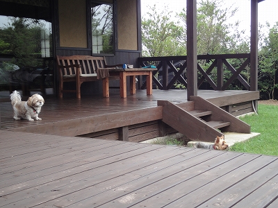 ![]() 贅沢にも、朝から露天風呂三昧の飼い主です。 ![]() ランチは小笠原で予約していますから、朝食は昨日買ったパンとコーヒーで軽く済ませました。 そして、共有のドッグランへ。 ![]() お部屋のドッグランでも十分なんですが やはり、広〜い共有ランで遊ばなくっちゃ、もったいない。 ![]() ブルーベリーはたくさん実ってましたが、熟すにはもう少し時間がかかりそうですね。 ![]() この日は7室、車が停まっていましたが、他の宿泊者の方とランで会うことはありませんでした。 ![]() 夕食、朝食を取らないと他の宿泊者の方と出会う機会が少なくなるのは、ちょっと寂しいですね。(^_^;) ![]() ![]() 四つ葉のクローバーを探してるところです。(爆) 母が2つ、私が1つ見つけましたよ。 ![]() 広いランで、リフレッシュできたところで・・・ぼちぼち部屋に戻りましょうか。 ![]() 去年の8月、ランチに来た時に綺麗に草が刈られて整地されていたので、てっきり、3つめのランができるのかな??と思っていましたが、今のところそのまま空き地のままのようですね。(^^ゞ ![]() お隣の「きすみれ」の前を通り・・・ ![]() ![]() ![]() 部屋に戻ってきたら、まずテラスへ。 ![]() そして、飼い主は再び、露天風呂へドボン!(爆) キャンディは勝手に庭とテラスを行き来してます。 ![]() 「また、入ったの??」 ![]() 「まったく・・・」 ![]() 「つきあってらんない」 ![]() と言いながら、キャンディもラナもテラスと庭を自由行動中です。 ![]() この日のお天気は本当に目まぐるしくて・・・朝はこんなに晴れていたかと思ったら 数分後には雲が空いっぱい。 ![]() 久住の山も見えないな〜と思っていたら、10分も立たないうちにこんな青空に。 ![]() 目まぐるしく変わる空の様子を眺めるだけ・・・という過ごし方もなかなかいいものですよ。 ![]() さて、つい先日、お揃いで作り直して作ったキャンディバッグとラナバッグ。 2つを並べてみました。 ![]() キャンディ、どっちがキャンディのかわかる?? ![]() 「ばかにしないでよね」 ![]() さすが・・・(爆) というかあたりまえのことでしょうが、ちゃんと自分のバッグの方に入ります。 ![]() 和室に並べておいた時もこの通り。_(⌒▽⌒)ノ彡☆ばんばん! ランチは11時半からなので、11時半までお部屋で過ごさせてもらいました。 |
