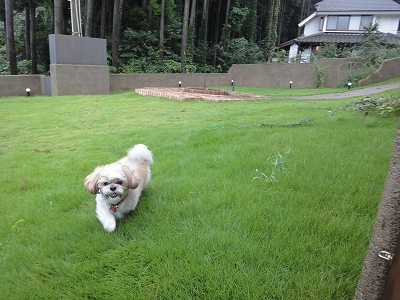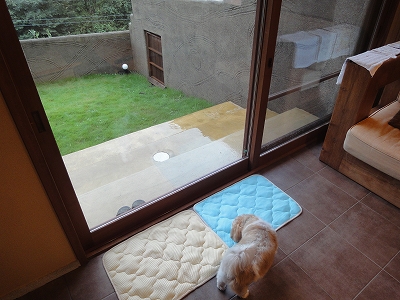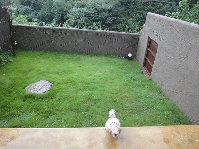 青碧の魅力はなんと言っても、お部屋からすぐに庭に出られること。 ![]() この日は残念ながら雨でしたから、思う存分庭を楽しむことができませんでしたが 部屋からすぐに庭に出られるおかげで、雨降りの犬連れ旅行でも意外に快適に過ごせました。 ![]() 部屋に庭がついていない場合だと、出る度にリードをつけて、ホテル(旅館)の玄関から出て・・と、とても面倒ですし、今回のように雨の日だとか飼い主も連れて出られる犬もかなり悲惨です。 (雨降りの日に別府に泊まった時は、キャンディも正直、楽しくなかっただろうな〜と思い出します。) ![]() ![]() 部屋から自由に出られる庭があると、ノーリードで出られますし、雨降りでも 「雨足が弱まった・・・」と思った時にすぐに出してあげることができます。 ![]() また、青碧の庭とドッグランは扉でつながっていますから、いちいち玄関に回って出ていかなくても、すぐにランに行くことができるのもよかったです。 ![]() (ドッグラン側から見た青碧の庭への扉) ![]() キャンディ「ここから出ていいの??」 ![]() キャンディ「ちょっとドキドキ!」 ![]() (ドッグランに出てきたキャンディ) ![]() キャンディ「わーーーーい♪」 ![]() ドッグランの全様。 ただ、ちょっと残念だったことのは・・・ 庭から上がる階段の段がちょっと高めだったので、ここでもキャンディは一人で上がりきれなかったこと。^^; ![]() (ここでもジタバタしているキャンディ) そしてもうひとつは・・・ ![]() ドッグランの入口からの下り坂は結構、急だったこと。 ![]() 青碧にお泊りの時はドッグランの扉から入ることはないですが、となりの蘇芳の部屋に宿泊した場合はこの扉の扉から入ることになります。若い方なら全く問題はないですが、うちの母のように杖を使う者にはちょっと厳しい勾配かな?と思います。 ![]() 庭から上がるテラコッタのリビングに敷いているマットは自宅から持参したマットです。 今回は最初から雨の予報でしたから、庭から上がる時にあると楽かな?と思って持参しましたが、思った以上に助かりました。 ![]() キャンディがランから帰ってみると・・・ ![]() ラナはぐっすりお昼寝中でした。(*^_^*) |