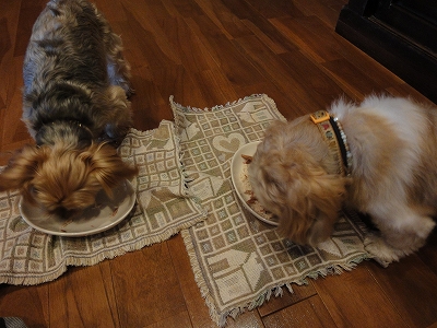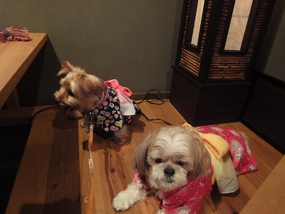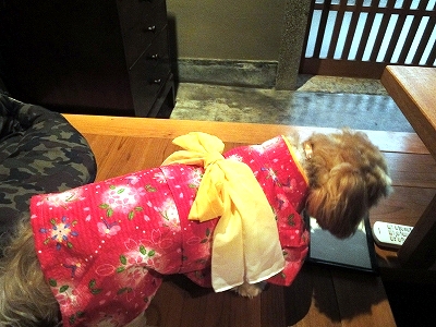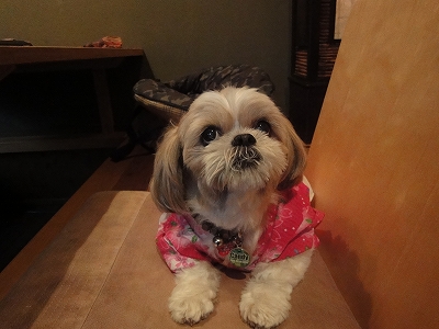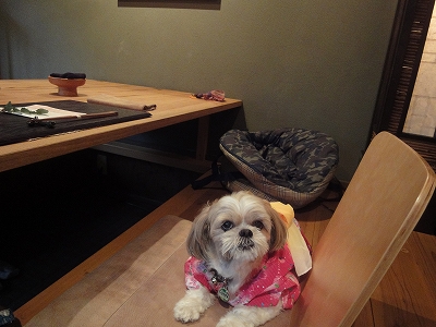 今回はキャンディたちの食事も予約しました。 ・・・が!天候が悪い中の宿泊だったからでしょうか? キャンディたちの食事は宿からのサービスになりました。(^O^)/ 天候が悪い日にお泊りするのも、悪いことばっかりじゃないですね〜♪ 犬用の食事はお願いした時間に部屋まで運んでいただけます。 ![]() 茹でササミです。思ったより量が多かったので、2回に分けてあげました。 予約する時に小型犬ということでお願いしましたので、大型犬の場合はもっと量を多くお願いできると思いますから、予約する時に相談してくださいね。 ![]() キャンディもラナも一心不乱に食べてました。(爆) ![]() さて、キャンディたちの食事が終わったら・・・今後は私たちの夕食です。 ![]() 食事はフロント近くの個室でいただきます。個室なのでわんこも同伴OKです。 ![]() ![]() 今回は掘りこたつタイプのテーブルのお部屋です。 ![]() ![]() キャンディとラナは和風旅館をイメージして、浴衣を着てみました。(^^ゞ ![]() ![]() ラナ「わたし、似合ってる???」 ![]() 本日の夕食 ![]() "月鈴子の宴" ![]() 毎度のことですが、飲み物は梅酒。^^; ![]() みかん酒というのがあったので、私はそれをもらってみました。 甘くってジュースみたいで飲みやすかったですよ。 ![]() とうもろこし豆腐 ![]() 前菜(黒豚角煮 サーモンセロリ巻き 丸十密煮 椎茸・春菊・菊花和え 湯葉田楽 鰻玉子) ![]() ![]() 地鶏団子鍋 ![]() 地魚三種盛り(シマアジがおいしかったです) ![]() ![]() ![]() 松茸・唐墨・大根・万願寺ししとう ![]() 鰆蓮根蒸し ![]() 口休めの魚鮨がすっごくおいしかったです。特に母は大変気に入ったようでした。 ![]() 太刀魚磯辺揚げ ![]() 豊後牛炭火焼 ![]() 御飯、香の物、赤出汁 ![]() 季節のフルーツ ![]() いやあ、豊後牛がホント、おいしかったです。 おいしいものを食べると自然と顔がほころんでしまうというのは本当ですね。(爆) ![]() さあ、おなかいっぱいになったところで部屋に戻りましょうか・・・ |