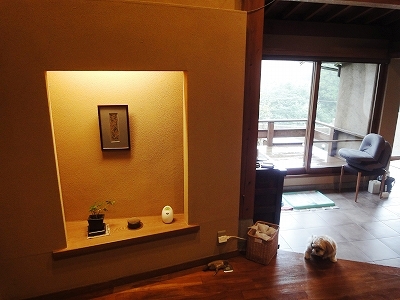 ランチを予定していたお店が臨時休業かもしれない?と思い、 出発の朝、宿へ「少し早目にチェックインさせてもらえないか?」と事前にお願いの電話を入れておきました。 ![]() ![]() 通常は15時チェックインですが、1時間早くチェックインさせてもらいました。 一壺天の方、その節はお世話になりました。<(_ _)> ![]() 母とキャンディ、ラナはラウンジで待ってもらい、荷物運び。 ![]() 雨が降っていましたが、ほとんどの荷物を宿の方に運んでもらえたので助かりました。 ![]() とりあえず、車から必要な荷物をフロントまで運び終わった後は、私もウェルカムティーをいただきます。私たちが一休みさせてもらっている間に、宿の方が荷物をお部屋まで運んでくれました。 ![]() ウェルカムティーを飲んだ後は、中庭を通ってお部屋へ。 フロントから部屋へ移動する時の傘は宿の傘を使います。 自分の傘はフロントで乾かして預かってくれる気配りがうれしいですね。 ![]() この日のお部屋はここ! ![]() 「青碧」です。 一壺天ではペット宿泊可のお部屋は原則的に「青碧」とその隣の「蘇芳」の2部屋になりますが、宿の配慮から別のお部屋でも宿泊できることもあります。 ![]() 前回、予約の時に母が杖を使うことを話すと「ペット可の2部屋は段差があるお部屋ですので、よろしければバリアフリーのお部屋をご用意させていただきますが・・」ということで、前回はバリアフリーの「真朱」に宿泊させてもらいました。 今回はベッドルームが増築され、ドッグランが横に併設された「青碧」に泊まるのが目的なので、バリアフリーのお部屋ではありませんが。(^^ゞ ![]() 確かに・・・フローリングとテラコッタのリビングの高さがこのように高めで、足の悪い母や高齢のキャンディにはちょっと厳しい部分もありましたが、段差が高い分、本人が必ず気をつけるので、中途半端な段差より逆によかったかもしれません。 ![]() ただ、キャンディにとってはこのように・・・微妙に厳しい高さではありました。 上がれそうで上がれなくて、何度がじたばたしましたから。(爆) ちなみにラナには全く問題ない高さです。 |