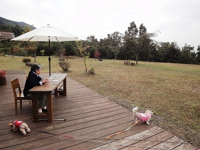 この日のランチは小国町にあるグリーンハウス。 ![]() ファームロードの途中にあります。 ![]() 「3連休の最終日だから、もしかして車が多いかも?」と少し時間に余裕を持たせたせいか、11時半前にお店に到着。3連休だったので前日にお泊りのお客様がいらっしゃったそうで・・・まだ、店内を片付けてるところにお邪魔してしまいました。^_^; ![]() ![]() 準備ができるまで、レストランの前のとても広い広場で遊ばせてもらうことにしました。 ![]() ![]() キャンディはいつも通り、隅から隅まで探検です。 ![]() ラナはこういう場所に来ても、すぐ母親にだっこをせがむんですが、この日は珍しくよく歩きました。 ![]() この開放的な雰囲気がきっと気持ちよかったんでしょうね。 ![]() キャンディとラナは、他のわんちゃんみたいに広場を激走することがないので、こういう広場に来ても若干、拍子抜けっぽく見えますが、これでも彼女たちなりにかなり満喫してると思います。(爆) ![]() ただ、ドッグランのように柵がしてあるわけではないので、呼び戻しに心配がある場合は気を付けてくださいね。 ![]() さてさて、珍しくよく歩いたラナですが、アクシデント発生。 ラナを抱っこした母の洋服に血がついているのに気がつきました。最初は母が指でも切ったのかと思ったのですが、よくよく見てみると・・・ラナの後ろ足の肉球から出てました。 本犬は全く気にすることなく歩いていましたし、ほんの少し肉球を擦りむいた程度だったので、タオルで押さえて止血するだけで大丈夫じゃないかと思いましたが、優しいオーナーさんが「イソジンで消毒しておいた方が安心だよ」とイソジンを脱脂綿につけて持ってきてくれました。オーナーさん、その節は本当にありがとうございました。<(_ _)> ![]() ちなみに・・・擦りむいたのは地面に直接つく部分ではなかったので、歩行には全く支障がなかったので助かりました。 ![]() ![]() 天気もよかったので、ランチはテラスでいただきました。 テーブルからの景色も最高です。(^^)v ![]() この日はちょっと霞がかかっていました。 奥様が「霞んでない時はこの山並みがくっきり見えるんだけど・・・」とちょっと残念に話してくれましたが、霞んだ感じが逆に山水画みたいに見えて、これはこれでとても神秘的に見えるので、私的には霞んだ景色も全然OKだと思います。 くっきり見える景色はまた次の機会の楽しみに取っておきましょう。♪ ![]() ランチはハンバーグを注文。 ![]() ![]() ![]() 食後にコーヒーをお願いしました。(コーヒーは別注文になります) ![]() こちらには黒のフレンチブルのボブ君(通称ブーちゃんだそうです)がいますので、オーナーも奥様もわんこにとても優しく接してくれます。 「人が大好きで全く吠えないから番犬にはならないんだけど・・・」とオーナー。 たまたまボブ君を抱っこする機会があって、抱っこしたんですが、ホントものすごく人慣れしているわんこでした。 フレブルを抱っこしたのは初めてだったんですが、ズシっとくる重量感とムチムチっとした感触がなんとも言えずよかったです。(爆) ![]() お店の場所もオーナーさんに電話で説明してもらうだけで、すぐわかりました。 目印としては、442号線からファームロードへの曲がり道に小さな看板。 (看板は黒川方面から来た時には見えないので注意) 次は「リトルカントリーさん」の大きな看板の下に「Green House」の看板があります。 ![]() とにかく、わんこにとても優しいオーナーさんなので、わんこ連れで自然を満喫することができます。 時間を忘れて、ず〜っと過ごしていたい・・・そんな気持ちになる素敵なお店です。 |