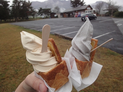 11月3日の延岡の天気予報はくもり時々雨。降水確率60%。 朝起きると大降りではなくても、やはり雨降り。 ただ、延岡は雨ですが、熊本、大分方面は曇、又は曇時々晴れの予報になっていたので、思い切って紅葉を見に出かけることにしました。 ![]() キャンディ「ホントに向こうは雨降らないのかな〜?」 2日後の土日は週間天気予報でしっかり雨マークになっていましたから、行くとしたらこの日しかないかな?と思って。 いざ、出発と出かけたのはいいですが、行けども行けども雨。 ![]() 久住町に入ると・・・ 傘をさすほどの雨が降ることはありませんが、霧が出てきました。 ひどい雨じゃないのはいいんですが、紅葉を見るのに霧はちょっと・・・ね。(-_-;) ![]() ![]() 「とりあえず、アイスでも食べてから行きましょう」とお約束のアイス休憩。 ![]() ここに来るとどうしてもアイスの小箱で食べたくなる私・・・。^_^; Hot 生キャラメルソフトにも魅かれたのですが、ここは無難にごまとHotじゃない生キャラメルソフトを注文。 ![]() 季節ですね〜 ソフトと一緒におでんが売られてました。 ![]() 天気が悪いので、いつも店前にあるテーブル席は片付けられていたので、ソフトは車の中で食べました。 晴れじゃないせいでしょうか?? 祝日なのに、駐車場にはうちの車だけがポツン・・・・(爆) |