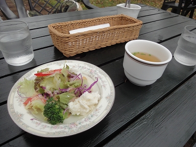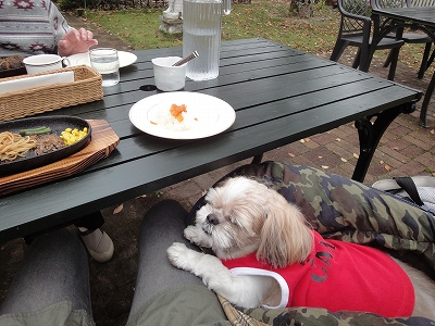 去年はけやきの森でロールケーキを食べましたので、この日は、けやきの森の2軒隣にあるWeedでランチしようと行ってみました。あいのせ茶屋から車で5分くらいのところにあります。お店に到着してみると・・・ さすがに祝日のお昼、駐車場はいっぱいでしたが、運よく1台スペースがあったので、車を停めて、犬連れでランチできるか聞きにお店の中に。 (注意:うちはドッグカフェ以外のお店に行く時は犬連れOKと確認していても、必ず、私だけが先に入り、お店の方に犬連れであることを伝えるようにしています。) 入ってみると、店内にはもちろんお客さまがたくさんでしたが・・・食事をしているお客様は見受けられませんでした。 「ランチオーダーして待ってる」って感じで、席が取れても待たされそうな予感がしたので、Weedをやめて、となりのけやきの森へ場所移動することにしました。 ![]() 次、平日に近くに来ることでもあれば、ランチに寄ってみようと思います。 (写真は外のテラステーブル) ![]() けやきの森はWeedの横並び、ほんの2,3軒先の場所にあります。(^^)v ![]() こちらもお店入口近くの駐車場はいっぱいだったんですが・・・ ちょっと離れた広い駐車場があるので平気です。 ![]() 逆に離れた場所に停めた方が素敵なお庭をゆっくり歩いて見ることができました。 ![]() ![]() ![]() テラスにはテーブルが4箇所おいてありますが、私たちは一番奥のテーブルへ。 (そういえば・・・去年も同じテーブルでした。^_^;) ![]() ![]() カレーにしようかと悩みましたが、2人ともハンバーグセットを注文。 ![]() 私の足にちょこんと足を添えてるキャンディさん。 ![]() 食べ物をねだらないので楽です。 ![]() デザートとコーヒーがついて1,250円。 とってもおいしかったです。 ![]() ![]() ランチ中、黒雲が出てきたので「ヤバイか?」と心配しましたが、いつのまにか雲は消えて、青空が見えてきました。 11月にしては気温も低すぎず・・・外でゆっくり食事ができて楽しかったです。 ![]() 駐車場の奥の紅葉です。 去年はこの駐車場横のお店にある黄色いもみじがとても綺麗でしたが、今年はすでに見頃が過ぎてました。 やはり、去年に比べると紅葉がちょっと早かったんじゃないかな?って思います。 |