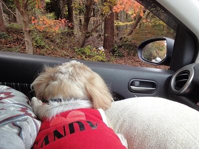 ランチの後は長者原、牧ノ戸峠を通りながら、再び久住高原ロードパークへ戻ります。 長者原はものすごい車と人でした。 あれほどの数の大型観光バスを一度に見ることができるのも、今の時期ならではですね。(^_-)-☆ 牧ノ戸を過ぎて、坂道を下っていく途中、なぜか車が停まりはじめました。 信号もないところなので、もしかして・・・と思っていたら、案の定、ヘアピンカーブのところで事故ってました。 ちょうど、カーブのところが綺麗に紅葉していたので、どちらかの脇見運転が原因じゃないかと思いますが、紅葉を見にドライブに行かれる方は脇見運転だけはしないように、お互いに気をつけましょうね。 ![]() そして、再び久住高原ロードパークへ。 逆方向に走ると、また違った見え方がするので2倍紅葉を楽しめます。 ![]() 行きと違い、帰りは霧が綺麗に晴れ、見晴らしもよくなりました。 行きの時には真っ白で全く見えなかったあざみ台も駐車場の車まではっきり見ることができます。 ![]() ![]() ここが久住高原ロードパークでも一番紅葉が綺麗な場所になります。 午前中は車も人も少なかったですが、午後になるとちょっと増えてました。それでも、通年に比べると少なかったですが。 ![]() 帰りの時間になるとキャンディはすっかり夢の中。 残念ながら晴天ではありませんでしたが、気温も低すぎず、雨も降らなかったおかげでキャンディたちもあちこちで歩くことができ、まずまずの紅葉狩りだったと思います。久住高原ロードパークとあいのせ茶屋の見頃は今週いっぱいかな?と思いますが・・・土日の天気は下り坂のようですし、今年は青空の下で紅葉を楽しむタイミングを見つけるのが難しそうですね。 |