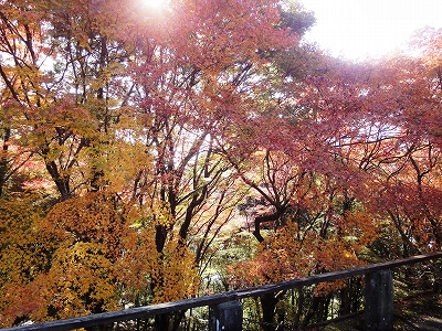 宝生寺の次は臼杵市の普現寺の紅葉を見に行きました。 ![]() 木漏れ日のトンネルの中、車を走らせた先に駐車場があります。 ![]() 駐車場の紅葉も綺麗です。 普現寺の紅葉の見頃は元々、11月の下旬なので、今年はまだ早いだろうな〜と思いながら行きましたが、思ってた以上に綺麗に紅葉してました。 ![]() ![]() ![]() 去年はすでに落ち葉のじゅうたんになっていた階段ですが、今回は色づき始め頃なので、まだまだ落ち葉は少ないです。 ![]() ![]() ![]() 階段を登りきると・・・紅葉真っ盛り。 ![]() ![]() 日の光が差し込んで葉っぱがキラキラ光って、とても綺麗です。 ![]() 境内には紅葉見晴し台があります。 ![]() 紅葉見晴し台から見た紅葉です。 ![]() ![]() ![]() ![]() ![]() ![]() ラナもうっとり見とれてます。(ホント?^_^;) ![]() 石階段の真ん中あたりから脇に入る小道があります。 ![]() ![]() 進んで行った先には大きなもみじ。 ![]() ![]() 葉っぱの隙間から光が挿して・・・まるで、切り絵のようです。 ![]() さあ、紅葉をいっぱい堪能したら、ぼちぼち戻りましょうか。 ![]() ![]() ![]() 普現寺の紅葉は今週あたりが見頃になりそうです。 (この日も十分、見応えはありましたが・・・) ![]() 紅葉時期の後半は階段を落ち葉が埋め尽くします。 当然、その頃は木々の葉は少なくなりますが、落ち葉の紅葉観賞も趣があって、なかなかGoodですよ。 普現寺から延岡へは、10号線で帰った方が近いのですが、時間もまだ余裕があったので、いつものT-Shopでソフトを食べて帰ることにしました。 ![]() ソフトとコーヒーを買って、休憩です。 ![]() ラナ「わたしのソフトはどれでしか??」 (ラナのソフトはありません!(爆)) ![]() キャンディ「ラナのソフトはなくても、わたしのソフトはあるわけよね!」 (いえ、キャンディのソフトもありません。(爆)) 11月最後の土曜日でしたが、こうして外でソフトを食べることができるくらいあったかくて、しかも青空。とてもついてる紅葉狩りになりました。 リベンジ成功ってとこですね。(^_-)-☆ |