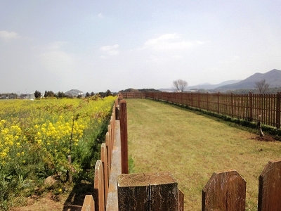 上天気の中、延岡を出発・・・ですが、帰ってくる頃は、市内の桜も散ってるだろうと思い ![]() 出発前に市内の桜スポットへちょっと寄り道。 ![]() 春日神社の鳥居の桜です。 ![]() ハラハラと散る桜がとても綺麗でした。 満開の桜を見た後は、宇佐へ向かって出発です。 北川町の道の駅「はまゆ」の手間にある日向長井駅前は道路沿いに桜並木がありますが、ちょうど満開で、とても綺麗でした。 ![]() 宇目町の道の駅前の斜面にも桜が満開でした。 行く先々の道路で、桜が満開。 ![]() 特に三重から野津にかけては桜の木が多く 「あそこにも桜!ここにも桜!」と助手席の母。 帰り道は山が白く見えるくらい桜が満開だったので、行く道より騒ぐことになりましたが・・・(爆) 春のドライブは本当に楽しいですね。 ![]() さて、宇佐に向かう途中、いつものように別府湾SAで休憩を取りました。 平日だったからか?人も車も少なかったですね。 ![]() ここ最近、休憩するだけで、お茶やランチをしていないので知らなかったのですが、今は別府湾SAのB-Speakもロールケーキの持ち帰りができるようになってたんですね。(^^)v 休憩した後、一路、宇佐のはちみつ工房・芳苑へ。 ![]() はちみつ工房・芳苑は宇佐ICを降りてすぐ左折する、この道から道なりのところにあります。途中、途中にミツバチの絵の描かれた看板がありますから、道はわかりやすいです。 ![]() こちらが「はちみつ工房・芳苑」です。 ![]() ![]() 大きなミツバチが目印。いやあ、ホント、大きなミツバチです。(爆) ![]() ![]() 店内には、お茶や食事ができるカフェスペースがあります。 ![]() そして、はちみつなども販売しています。 ![]() 今の季節は店内のテーブルの窓から菜の花が見え、まるで額縁の絵のようです。 ![]() ![]() ペット連れの場合は店内ではなく、外のテラスになります。 ![]() テラスは2つで、ドッグランの中にももうひとつありました。 ![]() お店の方から「どちらに座られますか?」と尋ねられましたが、ドッグランの外のテラスでお願いしました。 ![]() ドッグランは1匹300円の有料なので、中のテーブルだと多分、ランの料金も取られるだろうな〜と思ったので。(^_^;) ![]() キャンディ「ママはケチです。」 ![]() ![]() ドッグランは一見、狭そうに見えますが、縦長なので、結構、走れそうな感じです。 (うちの子たちには無縁の話ですが・・・^_^;) ![]() 小型犬エリアが分かれていますので、小さいわんちゃんも安心ですね。 ![]() 天気はとてもよかったのですが、時々、強い風が吹き・・・ キャンディは吹き飛ばされそうです。(爆) ![]() 母はロールケーキ。 ![]() 私は生チョコロールケーキ。 ![]() はちみつ屋さんなので、コーヒーの砂糖変わりにはちみつが出ました。 お茶をした後は、母ははちみつを買いに店内へ。 ![]() 母が店内にいる間、私たちは道路向うの菜の花畑へ。 ![]() ![]() いつもは湯布院ではちみつを買っていたので、食べ比べるのが今から楽しみです。 |