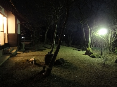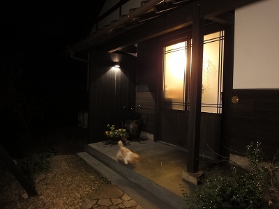 ![]() 夕食は6時と6時半のどちらを選びます。私たちは6時半でお願いしました。 ![]() 夕食時間の30分くらい前に、板さんと仲居さんが夕食の準備に来られます。 台所へは、玄関横のこの引き戸から入られます。 ![]() 夕食。まずは前菜です。 ![]() キャンディはバッグに入って、椅子に座らせました。 ![]() 地鶏の汁物 ![]() 飲み物はビールか焼酎か日本酒を用意できるそうです。 食前酒に梅酒が出ていたので「梅酒はありませんか?」と聞くと、食前酒に出した梅酒と同じものでよければ・・・ということで梅酒を出してもらいました。 ![]() 焼き立てのアッツアツです。焼き立てはやっぱ、おいしいですね。 ![]() ![]() お肉もおいしい。 ![]() お肉の後はさっぱりと季節感のある桜そば。 ![]() 板さんや仲居さんに吠えるんじゃないかと心配したラナですが・・・ 意外におとなしくしてくれました。でも、いつ、台所に行くかわからないので、一応、リード付きです。 ![]() 煮物 ![]() ご飯とお味噌汁 ![]() 最後にお茶とデザートがでます。 今回のように部屋に板さんが来て、作ってくれた食事を食べるのは初めてだったので、シャイな性格のラナが板さんや仲居さんに興奮するんじゃないかと心配しましたが、ほとんど問題ありませんでした。 部屋に入る度、扉を開け閉めする度に吠えるんじゃないかと心配してたんですけどね。意外に平気だったので、いい意味でちょっと拍子抜けしました。 板さんと仲居さんはお皿の片付けまで終わらせて、帰っていかれました。 ![]() 夜が更けて・・・ ![]() ![]() 夜の雰囲気もいいでしょ? ![]() 上の方の灯りは照明じゃないですよ。これ、お月さまです。(^◇^) ![]() ![]() ![]() 照明がつきますから、夜、キャンディを庭に出すのも全く問題ありません。 |