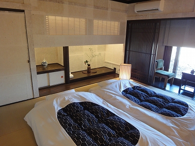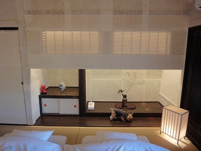 湯布院の街でぶらぶら買い物した後はお宿へ向かいました。 ![]() ![]() ![]() この日の宿は湯布院IC近くにある「山荘 花暢」 ![]() パピパパを通りすぎて、坂道を下ったあたりに高級旅館の「二本の葦束」と「誰が袖」の看板が左手に見えてきます。 ![]() ![]() それを通り過ぎ、「山荘 わらび野」があるこの道から入り ![]() ![]() この分かれ道を左に曲がります。 ![]() この分かれ道には小さな看板がありますが、私、えんやの看板はすぐに見つけたのに、この看板は見落としました。あとから見ると結構、目立ってるんですけどね。(爆) 宿は一軒家で、一日一組限定。 ペット連れで一軒家の宿は他にも数軒ありますが、大抵が家庭的なところが多い中、こちらはペット連れ一軒家でも、高級感にあふれたお宿です。 ![]() ![]() まずは玄関。 ![]() ![]() 照明や装飾品が素敵です。 ![]() ![]() 宿の鍵が入れてあります。 ![]() お部屋は4部屋。まずは1階のリビング。 ![]() 犬用にトイレと水入れが用意されてます。 ![]() リビングに入って右手にキッチンがあります。 夕食・朝食はここに板さんが来てくれて、私たちだけの為に食事を作ってくれます。 ![]() こちらは素泊まりや朝食のみでの宿泊もできるので、このくらいの大きさの冷蔵庫があるのは助かりますね。 ![]() 空気清浄器もちゃんとあります。加湿機能付なのがうれしいです。 ![]() テーブルの上にお茶が用意してあります。お茶もおいしかったですよ。(^_-)-☆ ![]() ![]() ![]() ソファーもなかなか、座り心地よかったです。(足が伸ばせるから楽) ![]() ソファーの前にTV。 毎度のことながら、天気予報とニュースを見るくらいで、ほとんど見ることはありませんでしたが・・。(爆) ![]() ![]() 和紙で包んでいる照明もなかなか感じいいです。 続いて、寝室はリビングの隣の部屋になります。 ![]() こらこらっ!狭い隙間に頭を突っ込んで、襖をこじ開けないの!(爆) ![]() 布団は敷いてあります。 ![]() マットレスがちょうどいい固さで、気持ちよく眠れました。 ![]() 寝室にはテーブルと椅子があり ![]() 座ると由布岳が真横に見えます。 ![]() 床の間も素敵です。 ![]() バスタオルと浴衣はこの部屋においてあります。 半纏のかけ方もなかなかおしゃれ。(#^.^#) ![]() 階段を昇って、下をのぞいてみると・・・ ![]() 玄関がこんな感じに見えます。 ![]() 2階には絨毯のお部屋。 ![]() 2階の部屋のこの扉を開けてみると・・・ ![]() 1階のリビングを見ることができます。 大人数でお泊りした時は、2階にいてもリビングとコミュニケーションがとりやすそうですね。 ![]() 普段は扉を閉めてるので、リビングから見るとこんな感じです。 ![]() 最後は1階にあるもうひとつの和室。 リビングと寝室だけで十分なので、この和室と2階の部屋は見学させてもらっただけで、部屋は使いませんでした。 この一軒家をたった2人と2匹で泊まるなんて・・・贅沢!(#^.^#) ![]() じゃらんでは「ペットが寝室の中に入ることはご遠慮頂いております」とありましたが、チェックインの時の説明では基本的にどこでもフリーということでした。 ・・・と言っても、キャンディもラナも自分のバッグの中で眠りますので、布団に上がることはなかったです。基本的にフリーだからと言って、なんでもOKというわけでもないと思いますから、犬連れのマナーはお互い、守りましょうね。(^_-)-☆ |